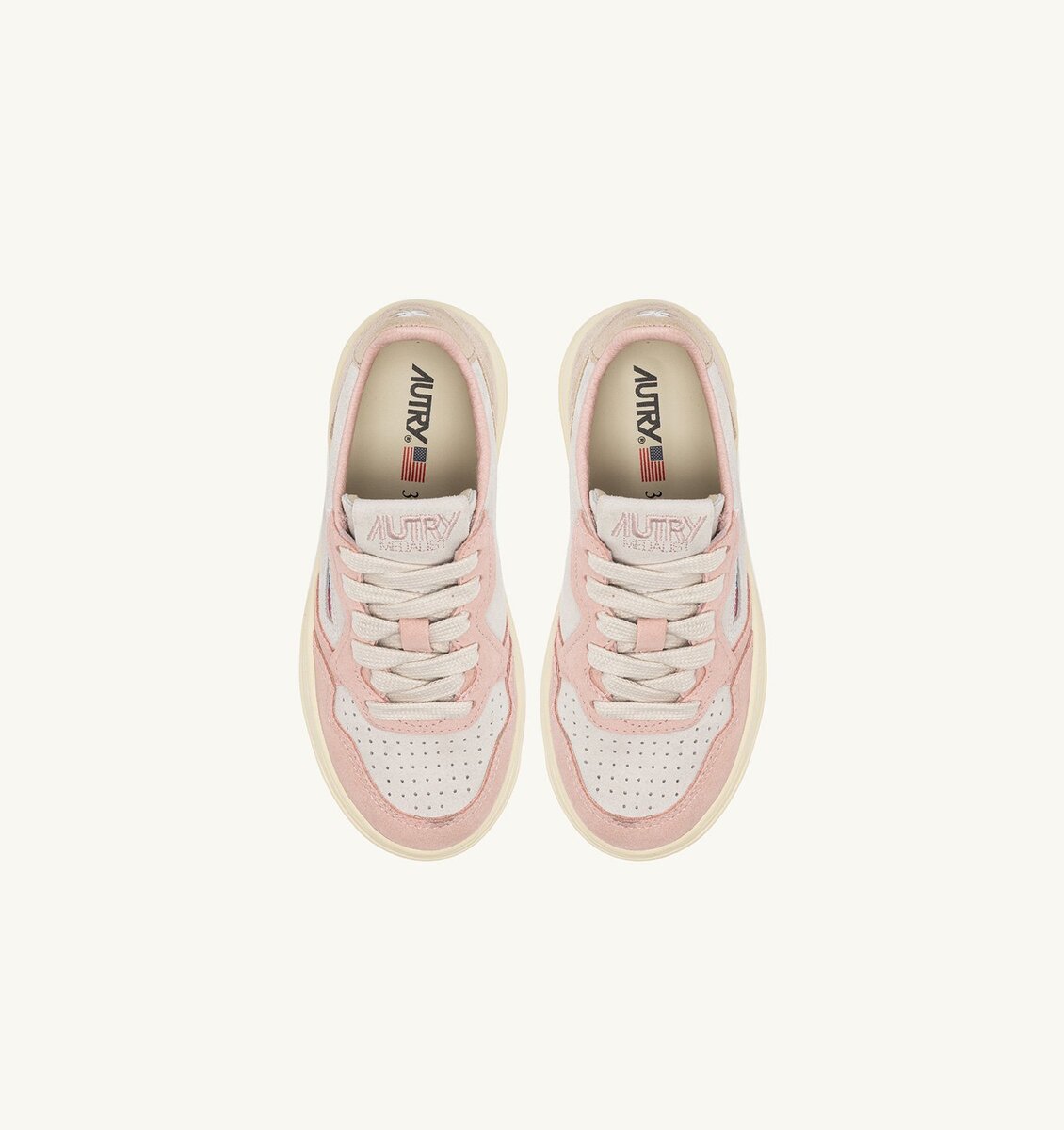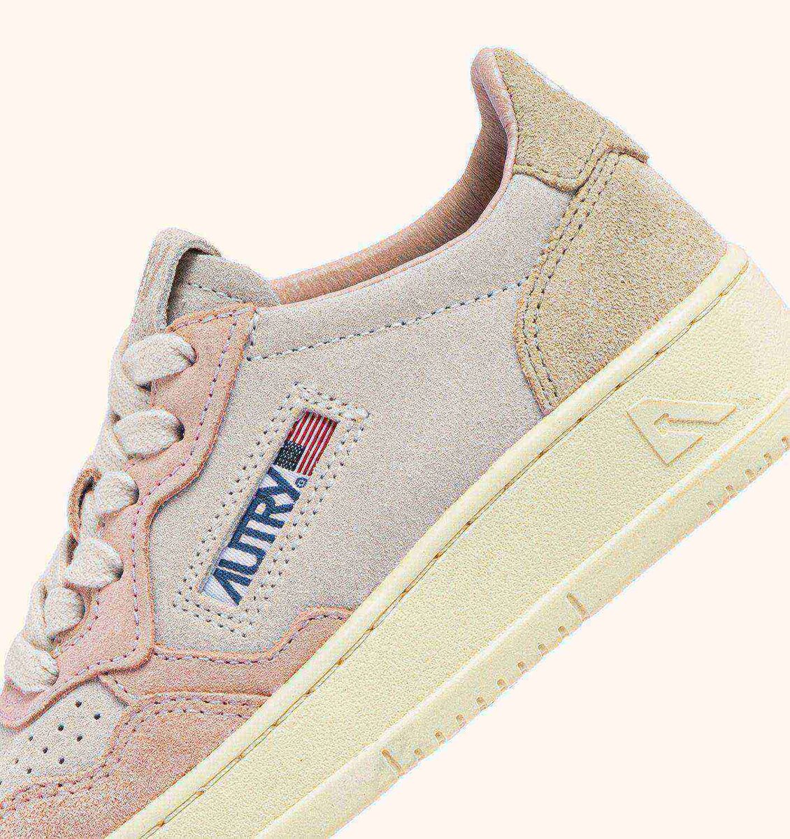 Made of white, beige and pink suede, they rest on a comfortable rubber sole and stand out for the authentic details and typical Autry logo.