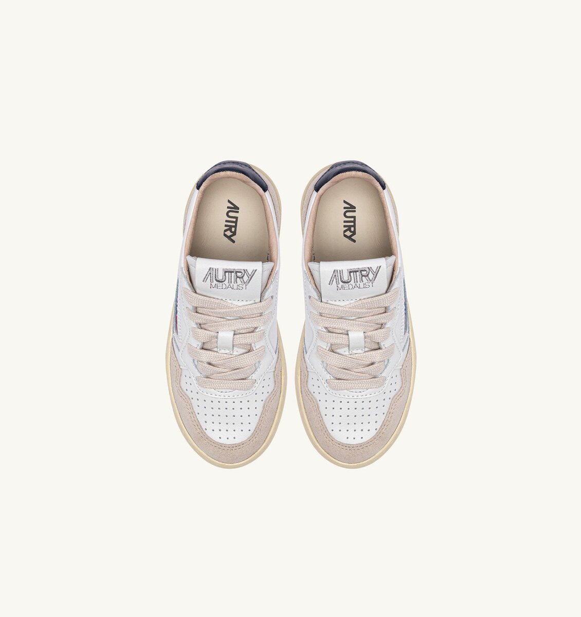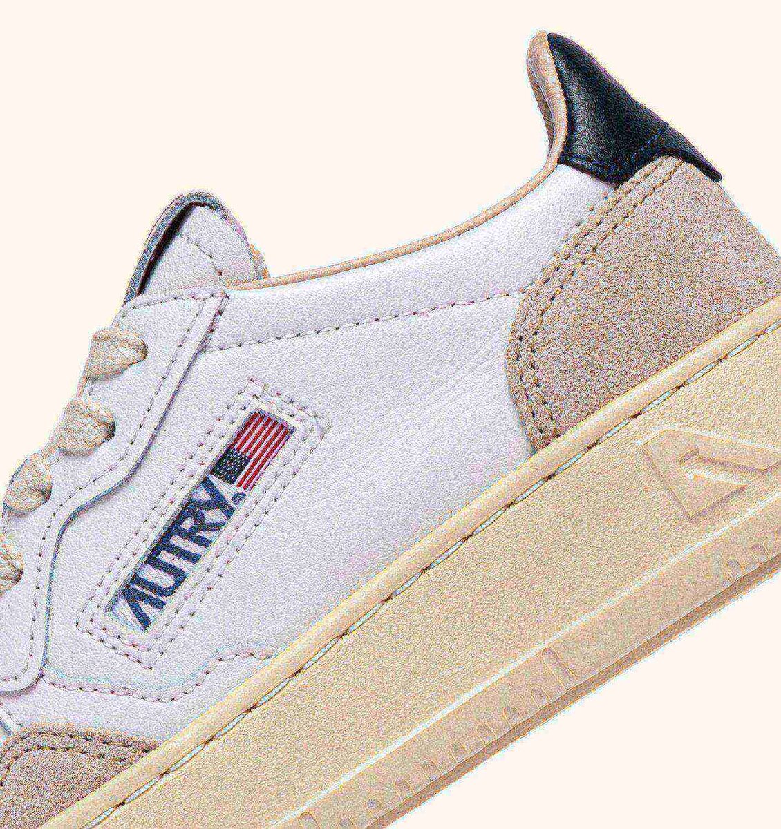 Crafted from suede in shades of white and blue, they rest on a comfortable rubber sole and stand out for the authentic, logoed details that are signature to Autry.