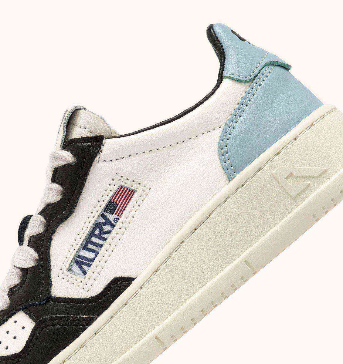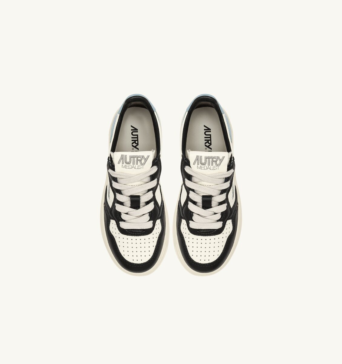 MEDALIST KIDS LOW SNEAKERS IN WHITE BLACK AND BLUE LEATHER