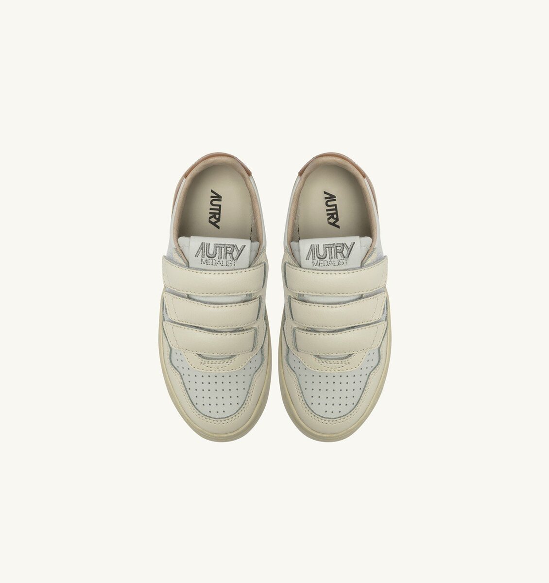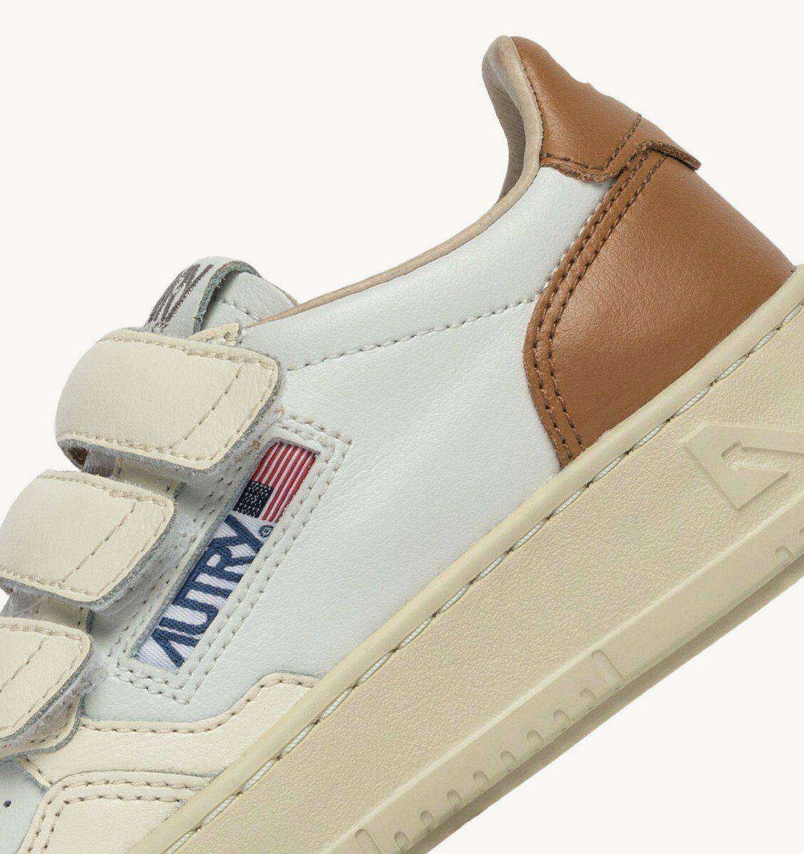 Made from white, ivory white and brown leather, they feature convenient hook-and-loop straps and rest on a comfortable rubber sole, standing out with authentic, signature Autry branding.