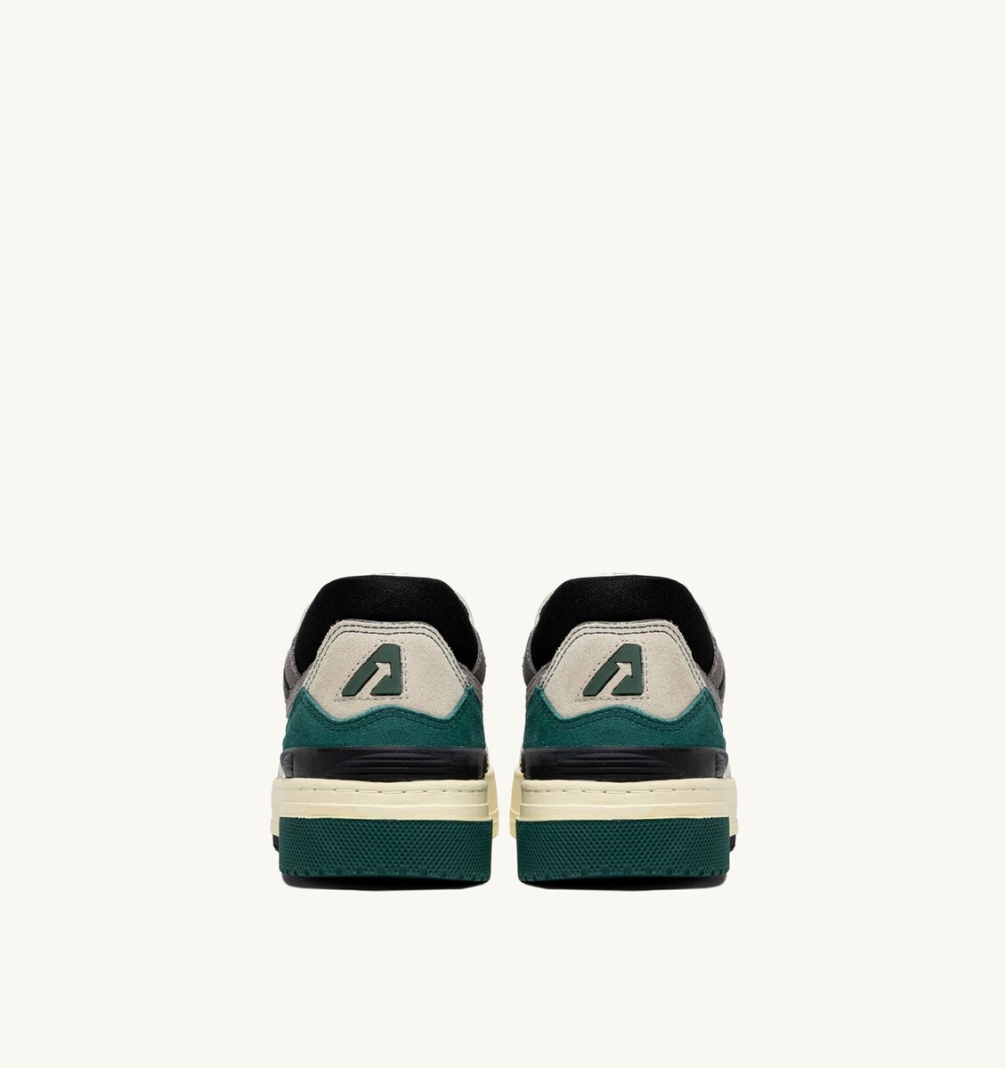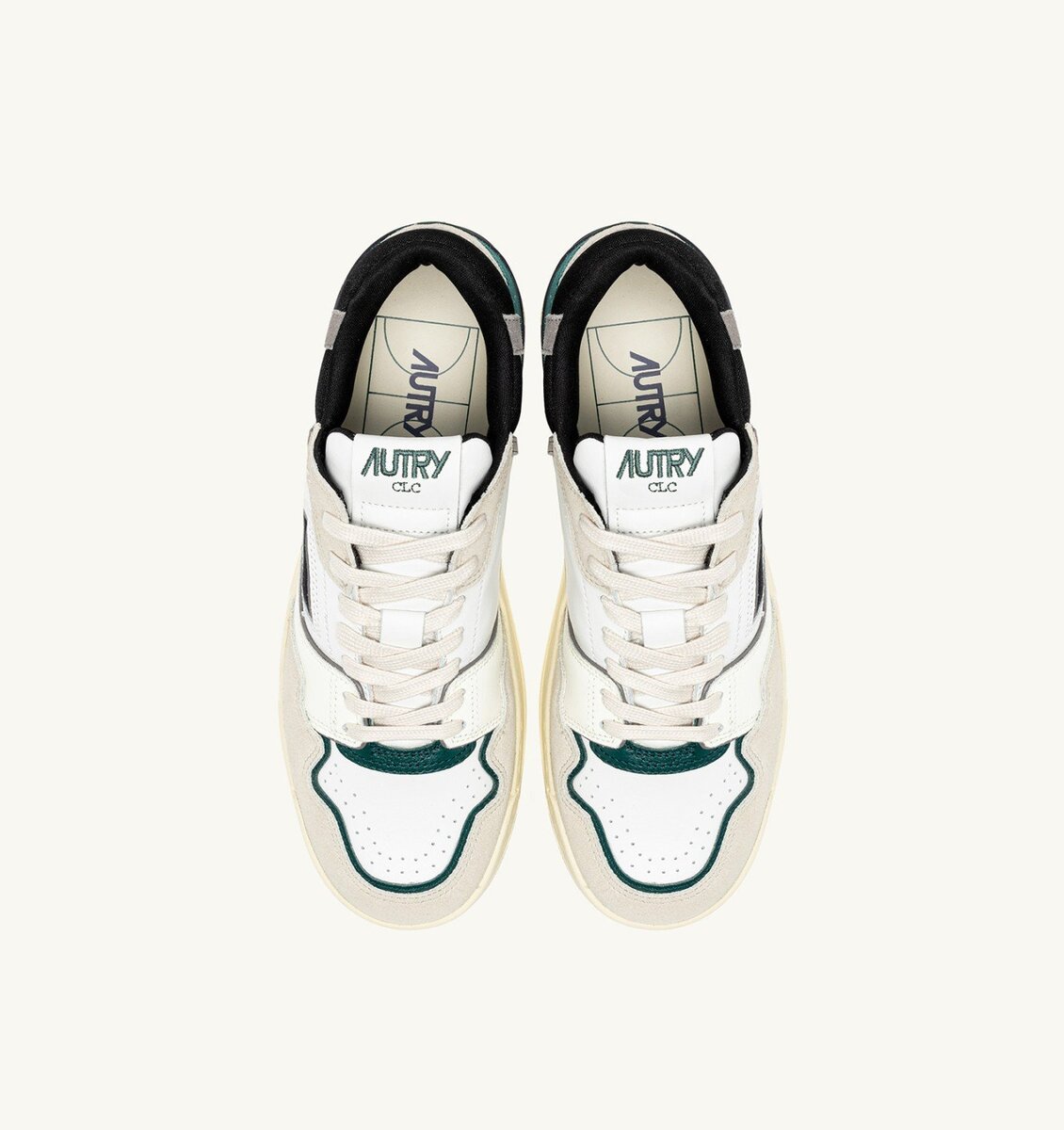 A reinterpretation of the classic Medalist with added volume, the CLC stands for Counter-Lock-Cord, referring to the ankle reinforcement typical of basketball shoes. This men’s sneakers is crafted from white leather with green and black details and light gray and dark green suede inserts that create a nice contrast.