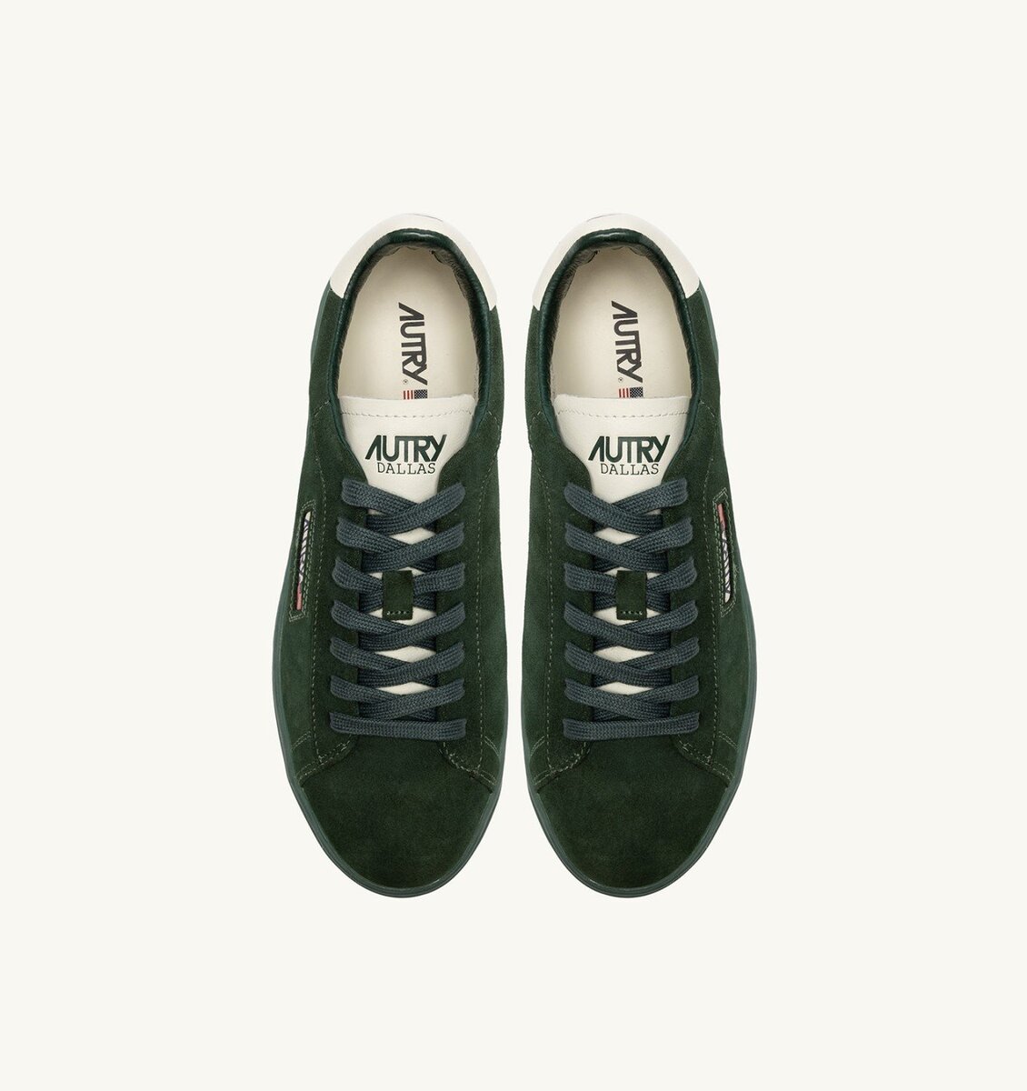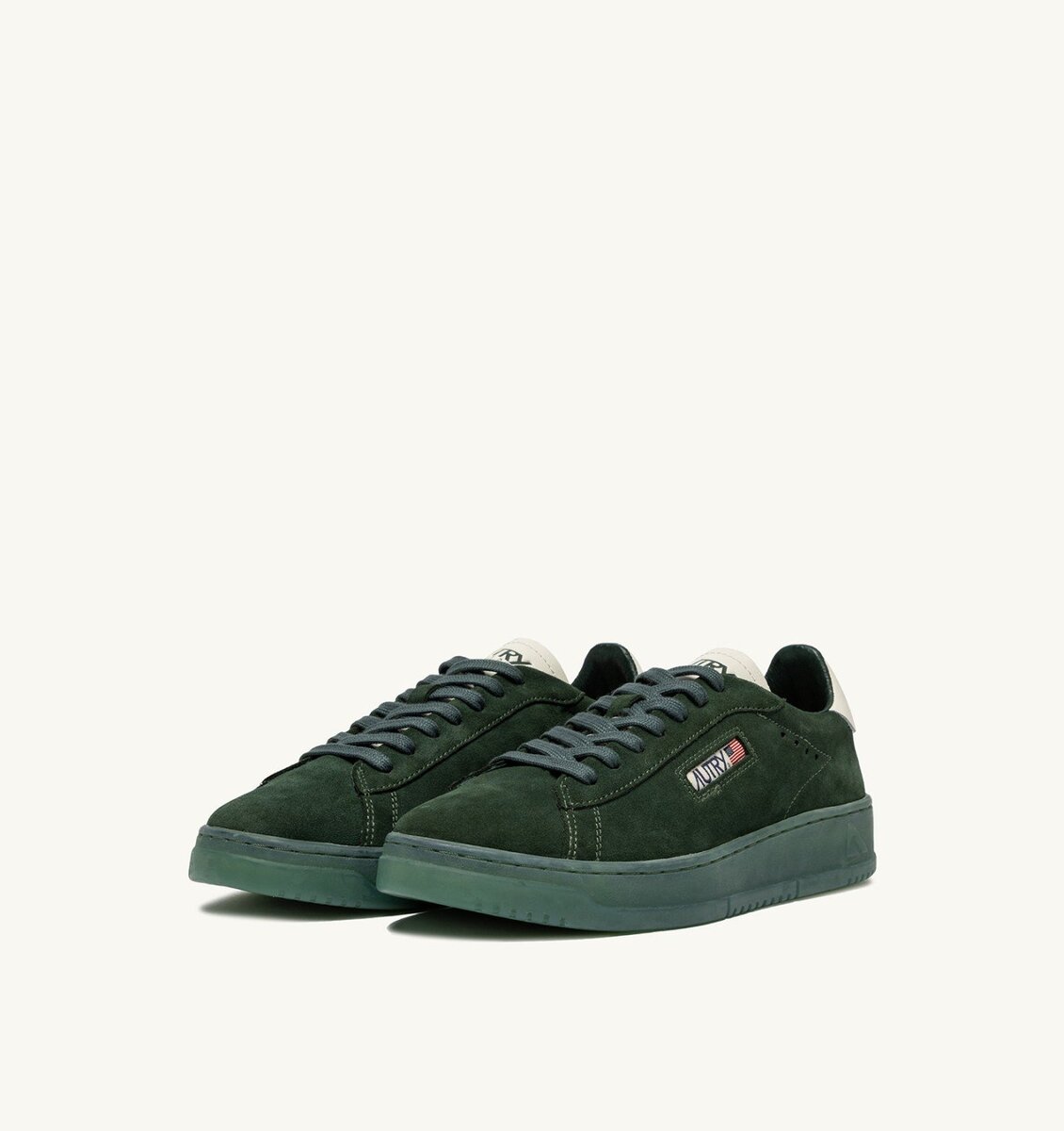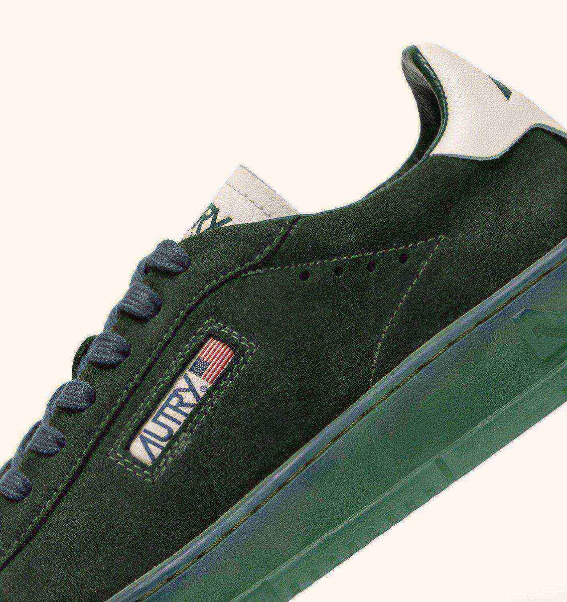 Upper in soft, natural-looking suede enriched by the white leather heel tab with embossed Autry logo color green, which gives the whole shoe an authentic look. The Autry logo at side adds the final touch.