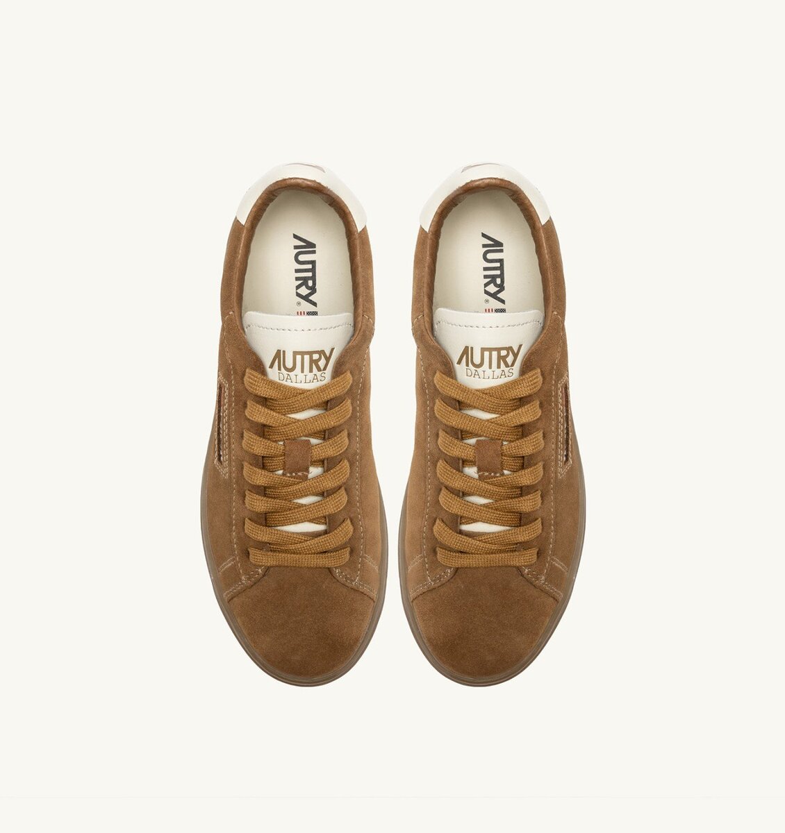 Upper in soft, natural-looking suede enriched by the white leather heel tab with embossed Autry logo color brown, which gives the whole shoe an authentic look. The Autry logo at side adds the final touch.