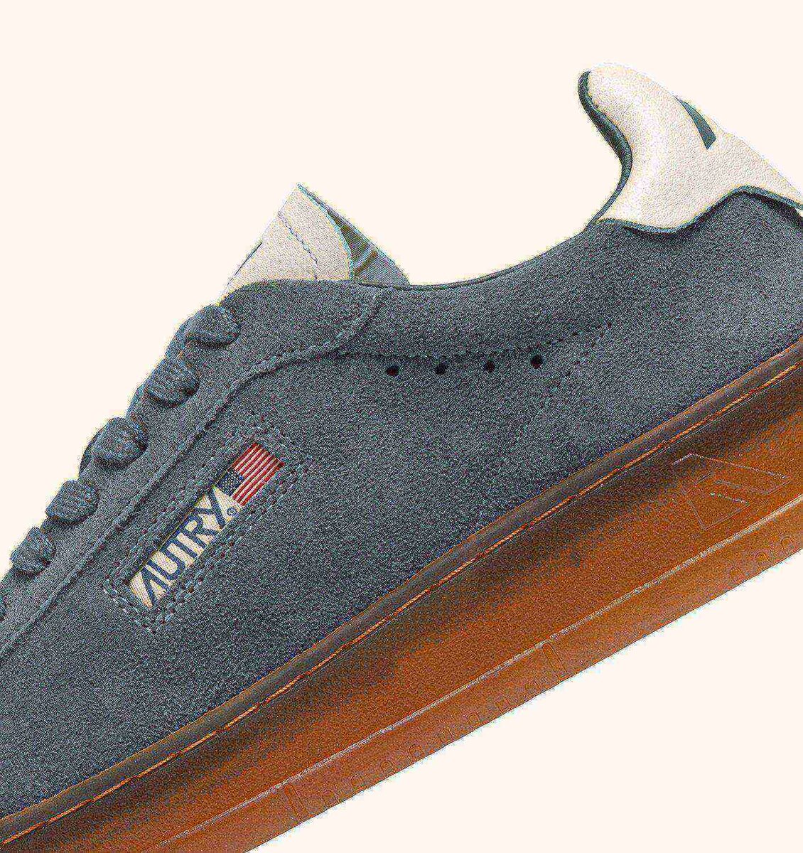 Upper in soft, natural-looking suede enriched by the white leather heel tab with embossed Autry logo, which gives the whole shoe an authentic look. The Autry logo at side and white leather tongue add the final touch.
