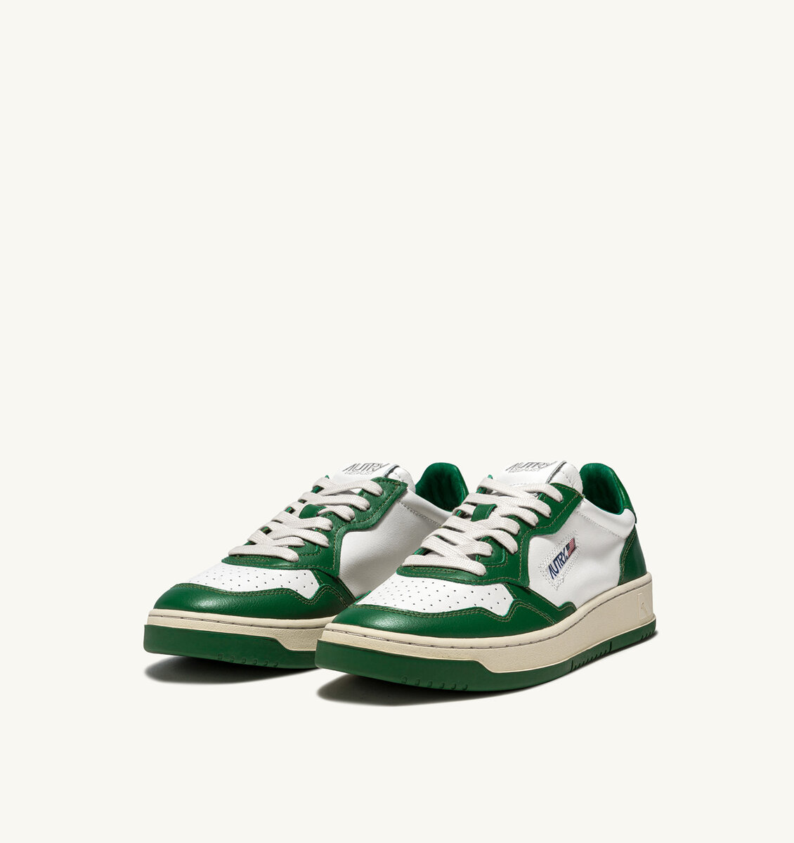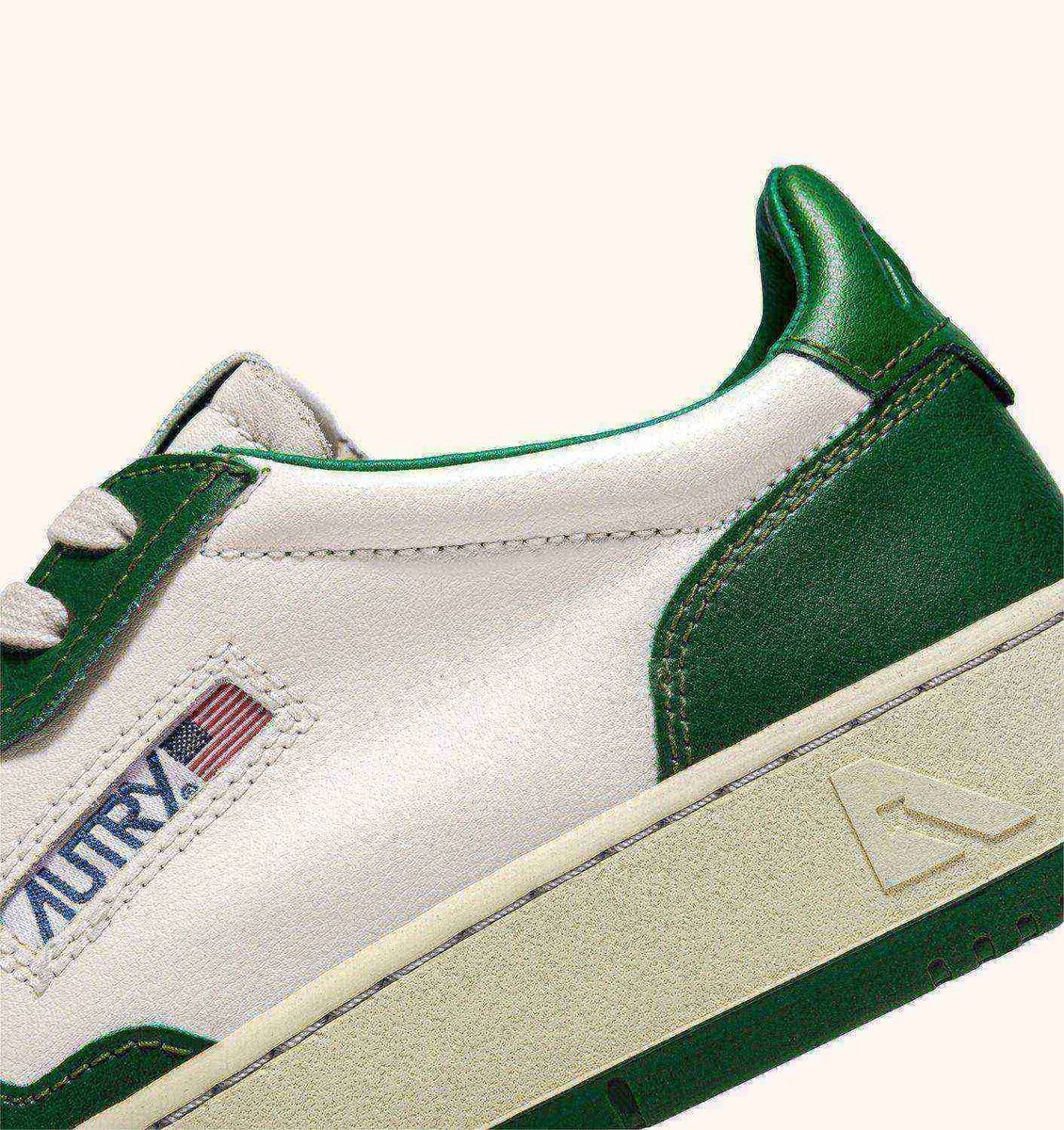This men’s version channels the attitude of the original Autry design, inspired by 1980s tennis shoes, updating the proportions and materials to ensure excellent comfort and contemporary appeal. Crafted from soft leather with a supple, authentic look and feel, it features a bold white and green colour block pattern, and a natural rubber sole with a green tread to add rhythm to your step.