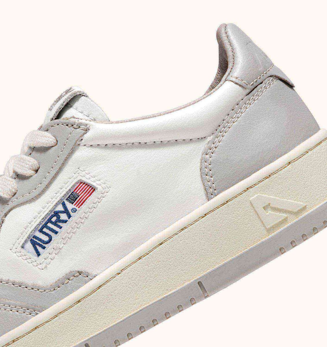This men’s version channels the attitude of the original Autry design, inspired by 1980s tennis shoes, updating the proportions and materials to ensure excellent comfort and contemporary appeal. Crafted from soft leather with a supple, authentic look and feel, it features a bold white and gray colour block pattern, and a natural rubber sole with a gray tread to add rhythm to your step.