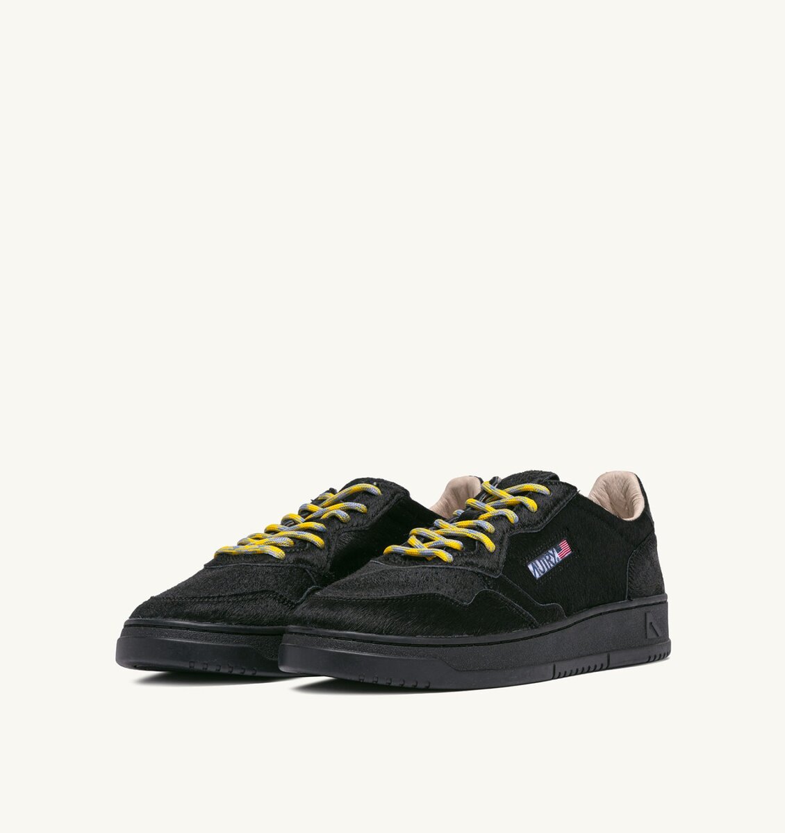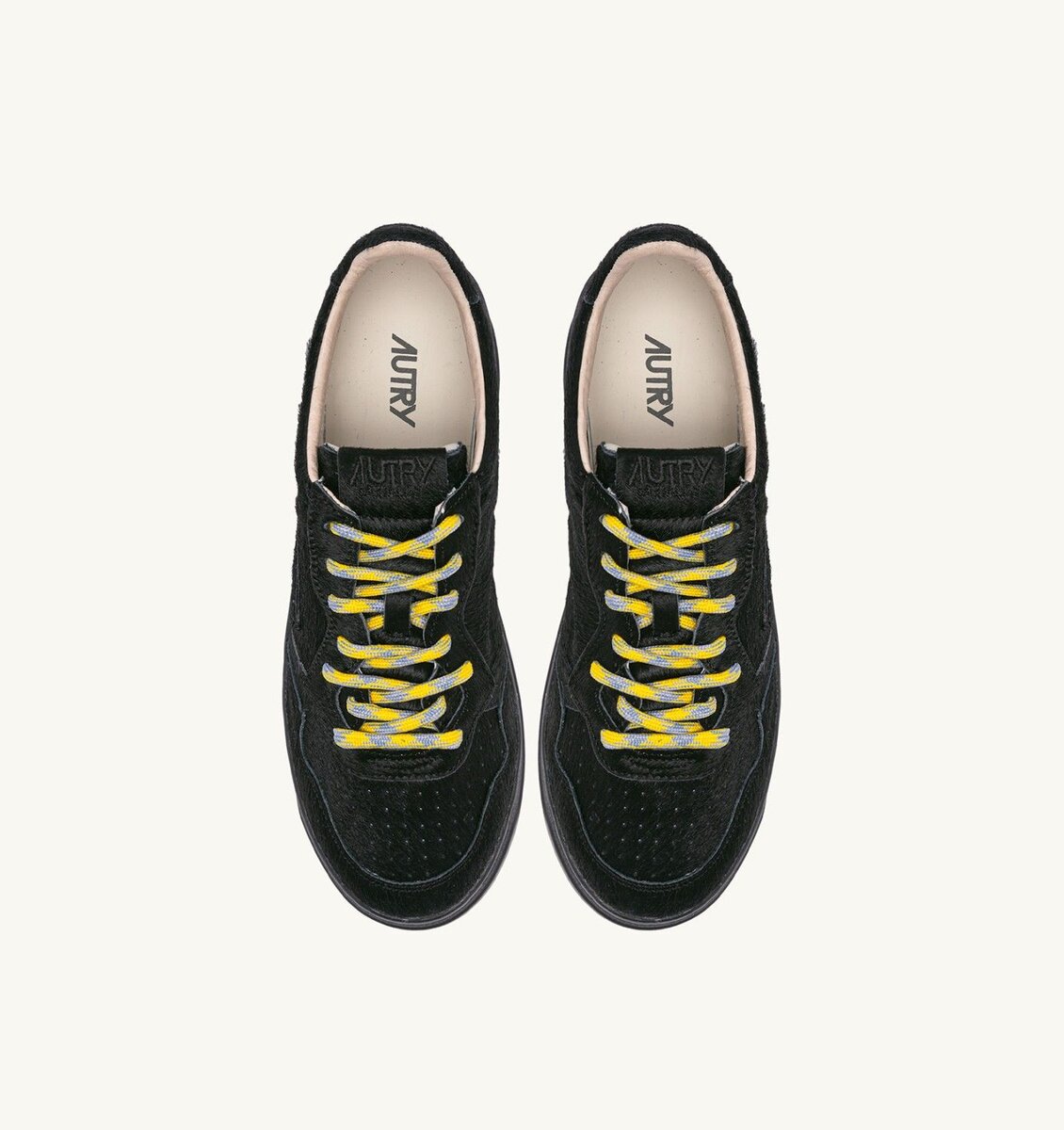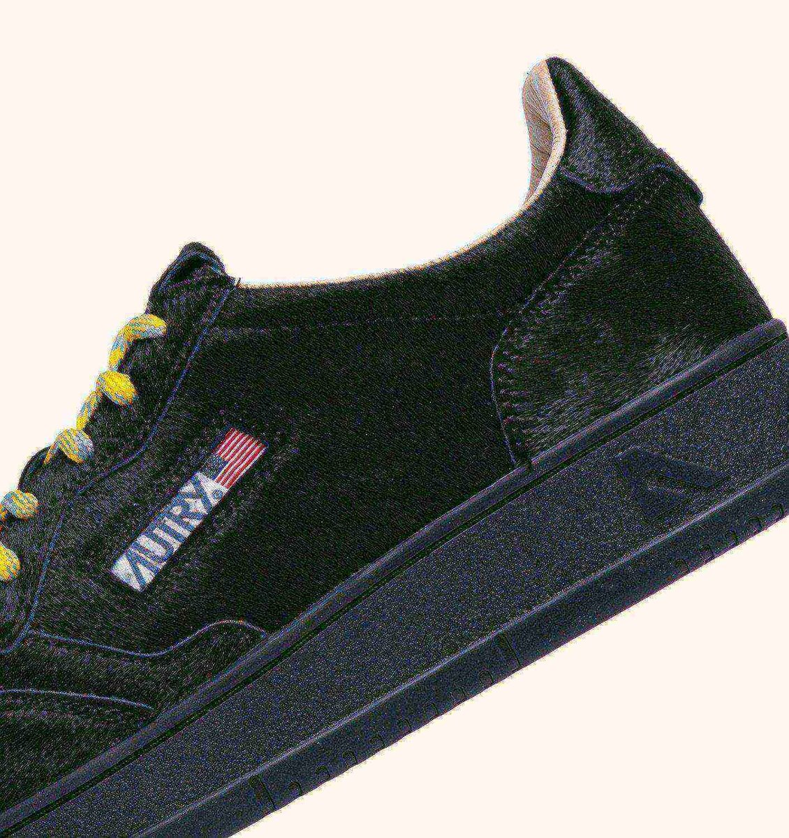 This men’s sneaker features a black pony hair effect upper, finished with a matching tongue and a stitched logo label. Micro-perforations at the toe ensure excellent breathability and the details at the outer side and heel are adorned with the Autry logo.