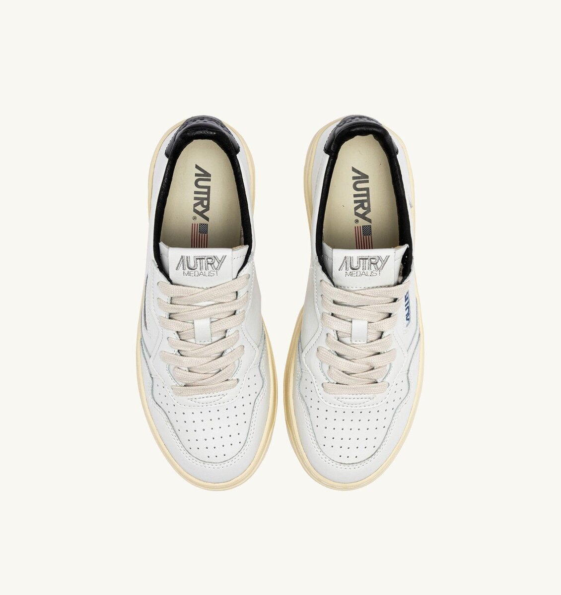 For true collectors: the Autry Medalist returns in an eye-catching seasonal variation. Blending form and function, this men’s sneakers is built with a soft white leather upper, enriched with perforations on the toe for breathability, and a black heel tab for a subtle yet captivating graphic touch.