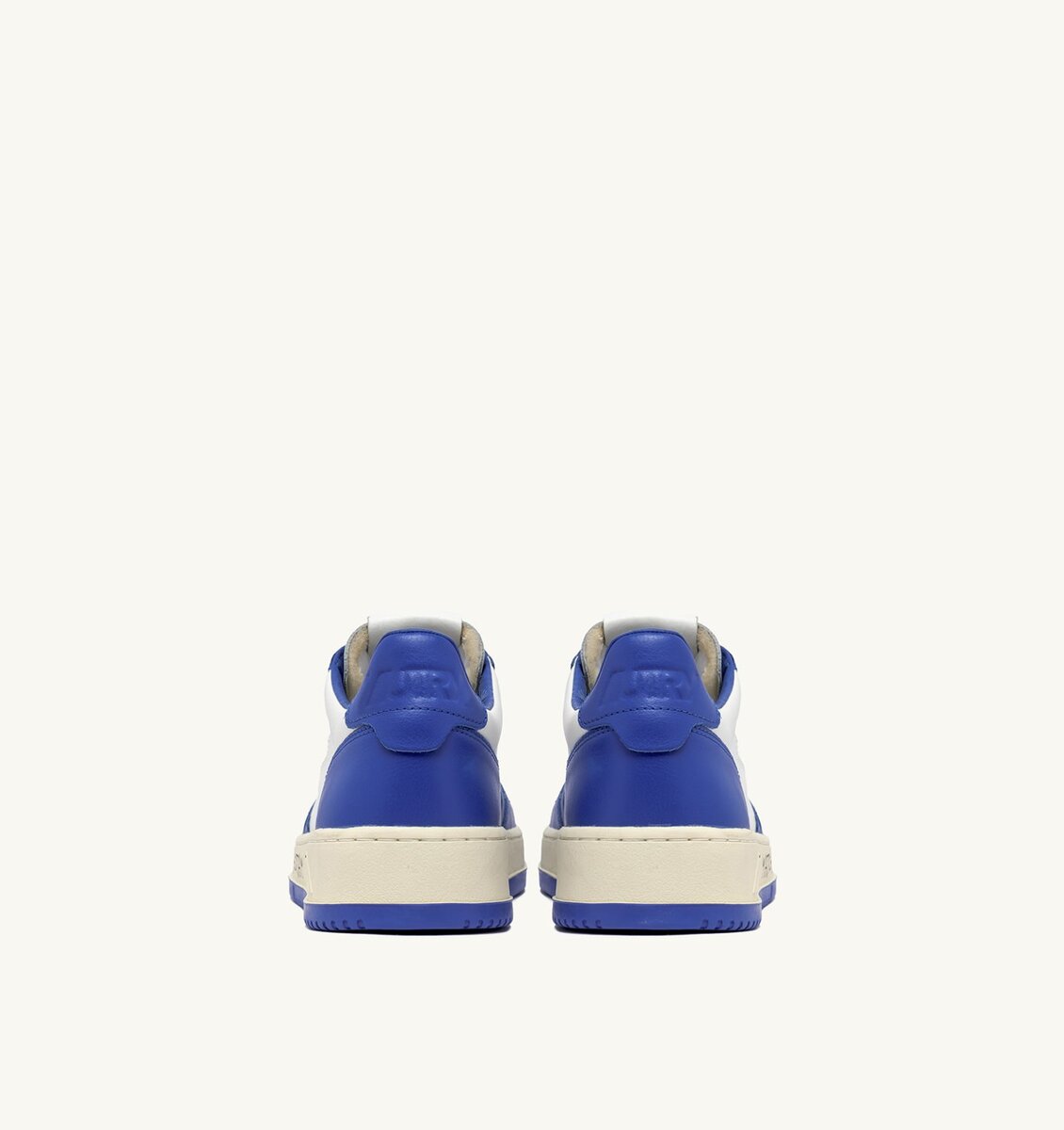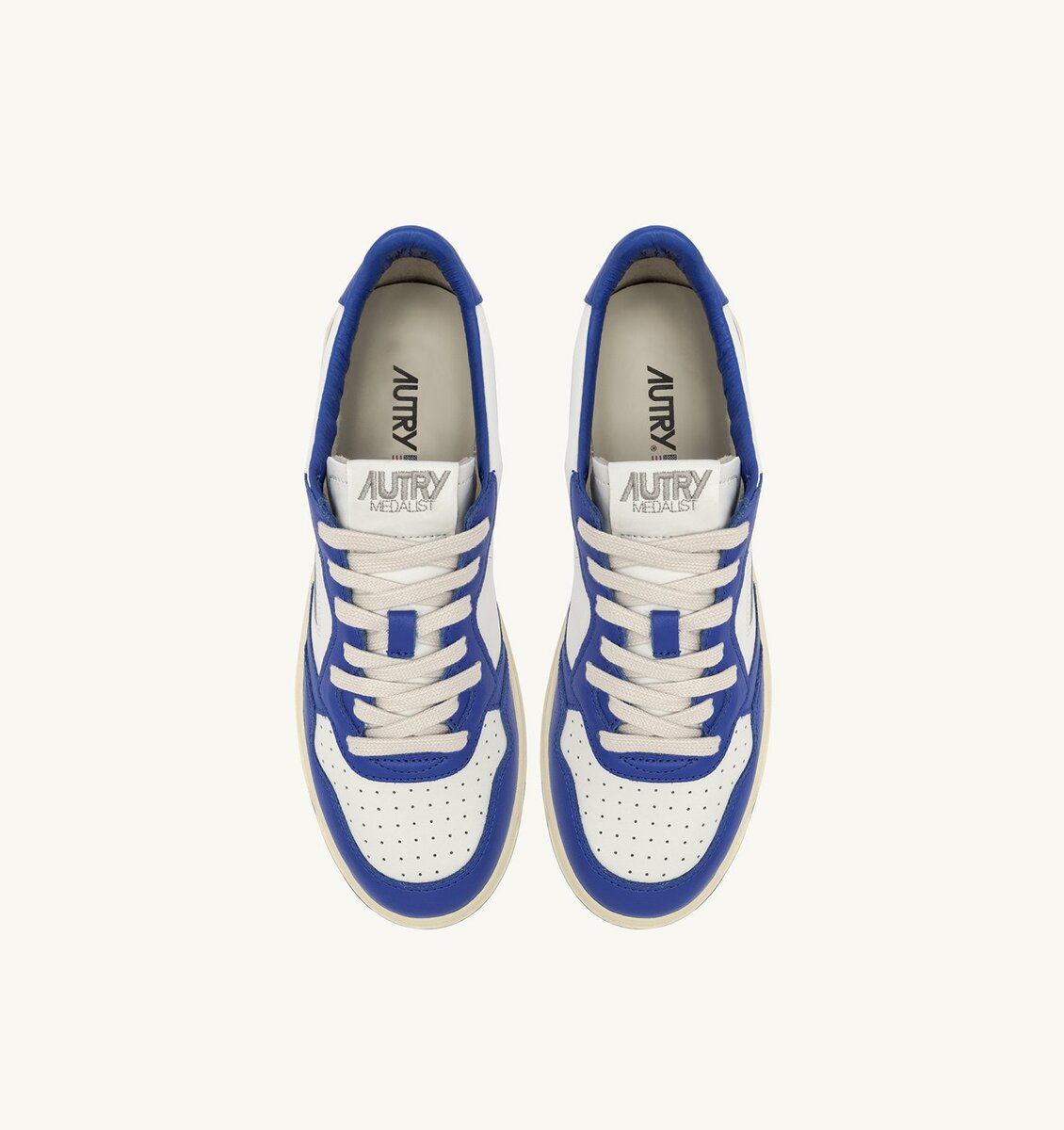 Elevate your everyday style with Autry’s Medalist. This men’s athletic shoe is crafted from white leather and finished with blue inserts creating a bold and striking graphic contrast.