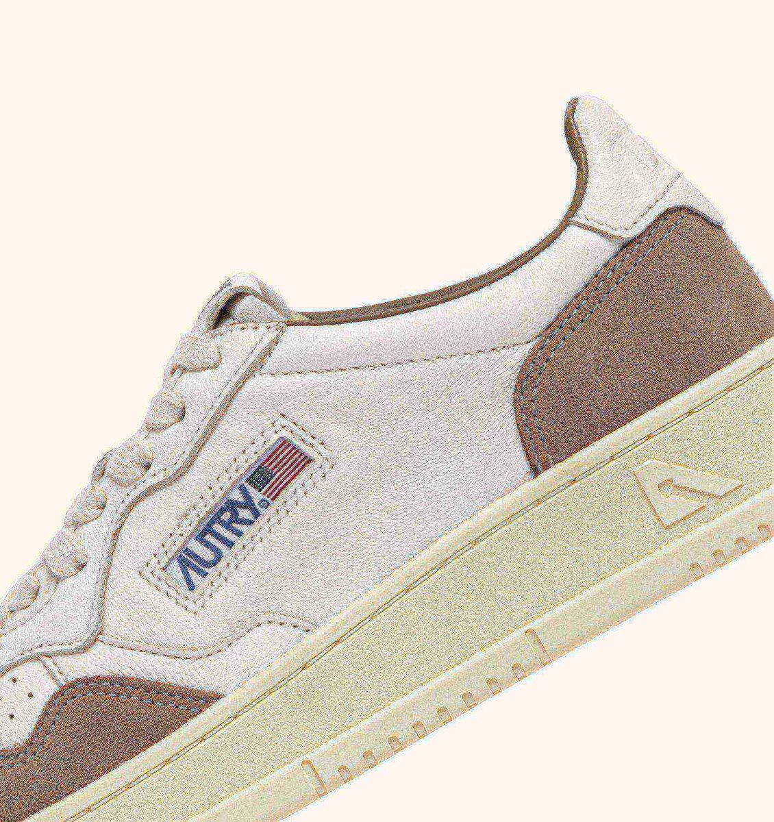 Autry Medalist heralds a new era of style and comfort. With a low top profile, this men’s sneakers is crafted from white goatskin, featuring brown suede inserts and a white logoed heel tab that define the upper.