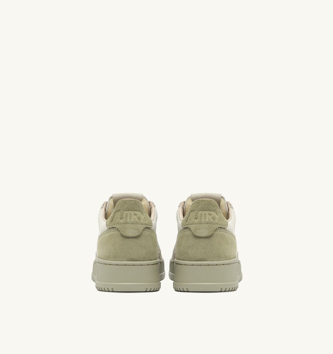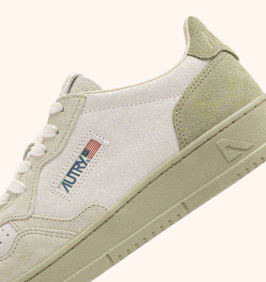 MEDALIST LOW TRICOLOR SNEAKERS IN SAND BROWN BEIGE AND GREEN GRAY SUEDE