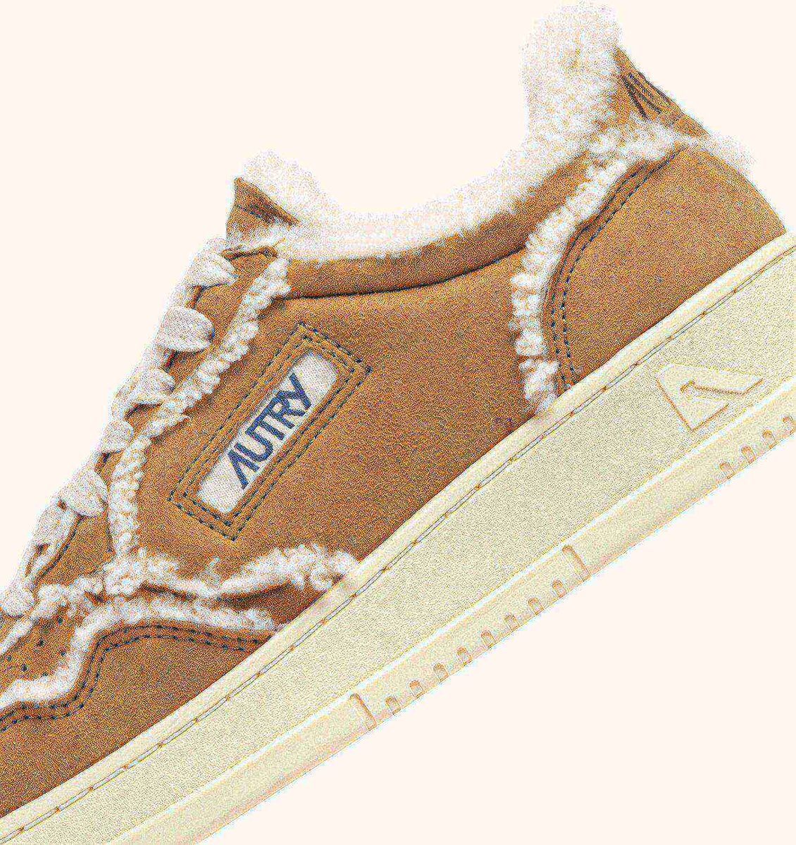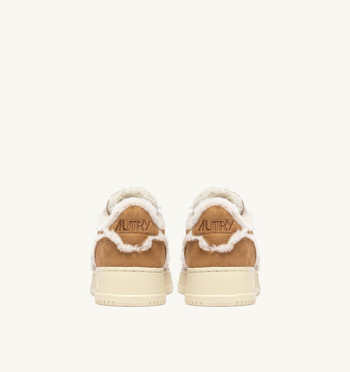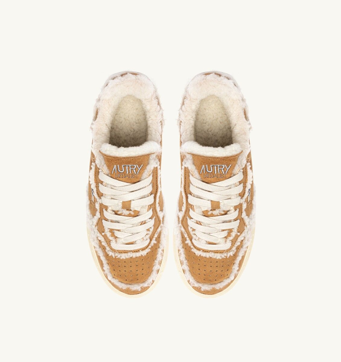 MEDALIST MUTTON SNEAKERS IN COGNAC SUEDE AND IVORY SHEARLING