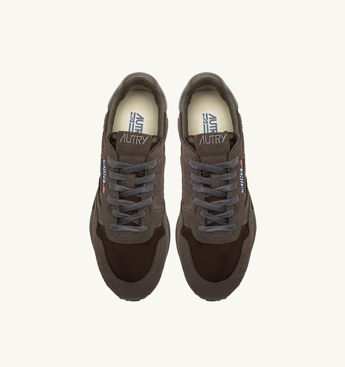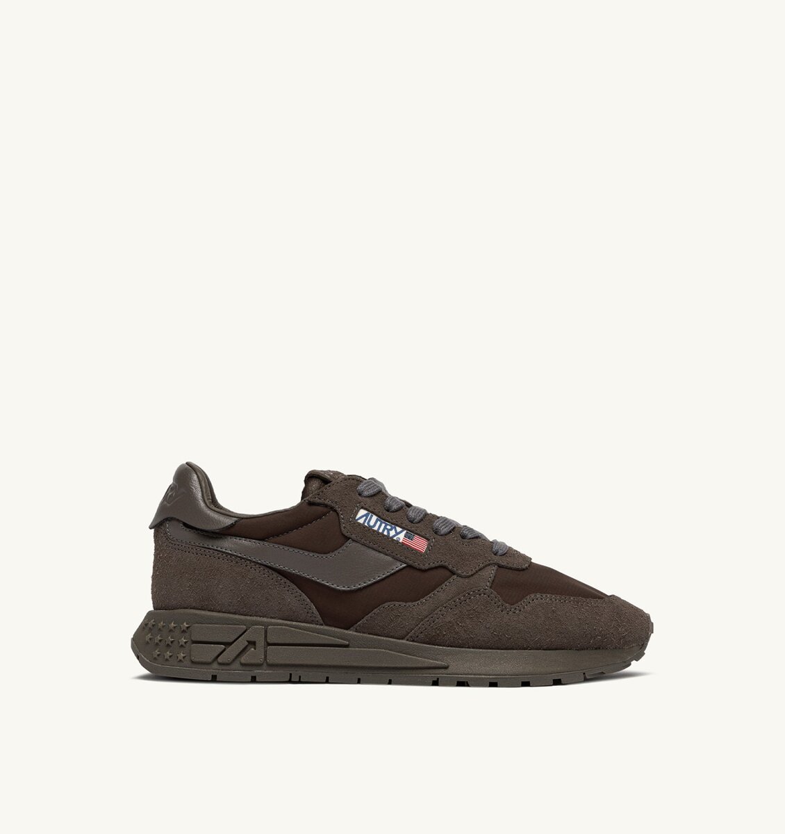 Innovative, light and extremely flexible, Reelwind Autry sneakers draw inspiration from the running world. The men’s style is crafted from a mix of suede and brown ripstop nylon, with side panels in leather.