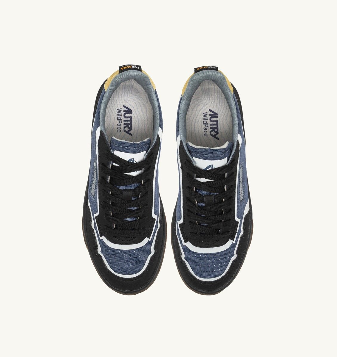 The new Autry Wildpace style stands out for its outdoor-inspired design, featuring technical details that enhance performance. Crafted from blue ripstop nylon and black leather, this sneakers is enhanced with TPU-coated details, a side insert with the Autry logo in silicone, and a suede heel tab with an embossed logo.