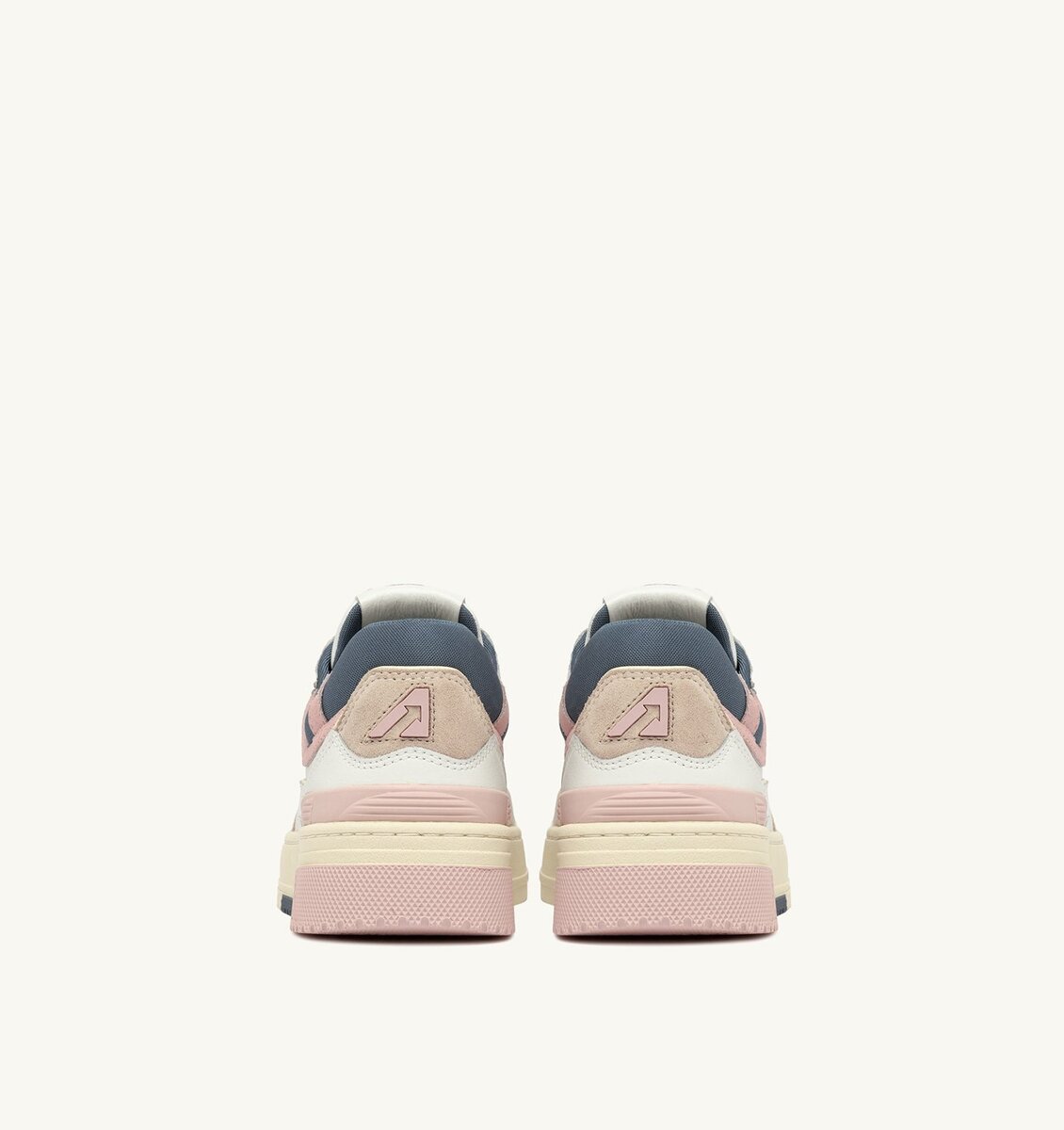 CLC sneakers come as a reinterpretation of the classic Medalist with added volume; CLC stands for Counter-Lock-Cord and refers to the ankle reinforcement typical of basketball shoes. This women’s design is crafted from white leather with pink suede and color matching inserts at the heel and toe, characterized by a bold and welcoming shape with a padded mesh ankle collar and internal support that provides additional heel support.