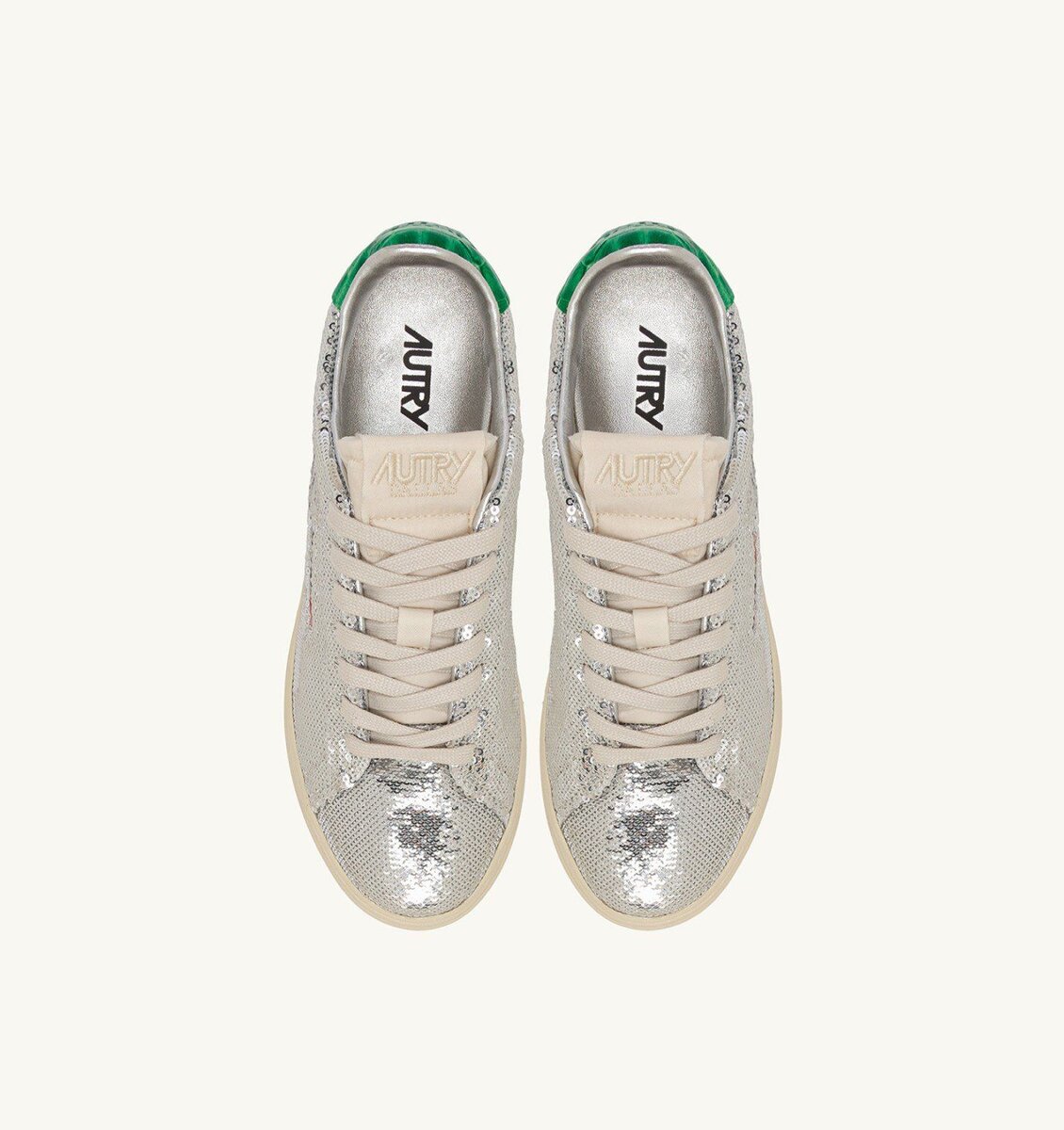 DALLAS LOW ‘SPARKLING’ SNEAKERS IN SILVER AND GREEN SEQUINS