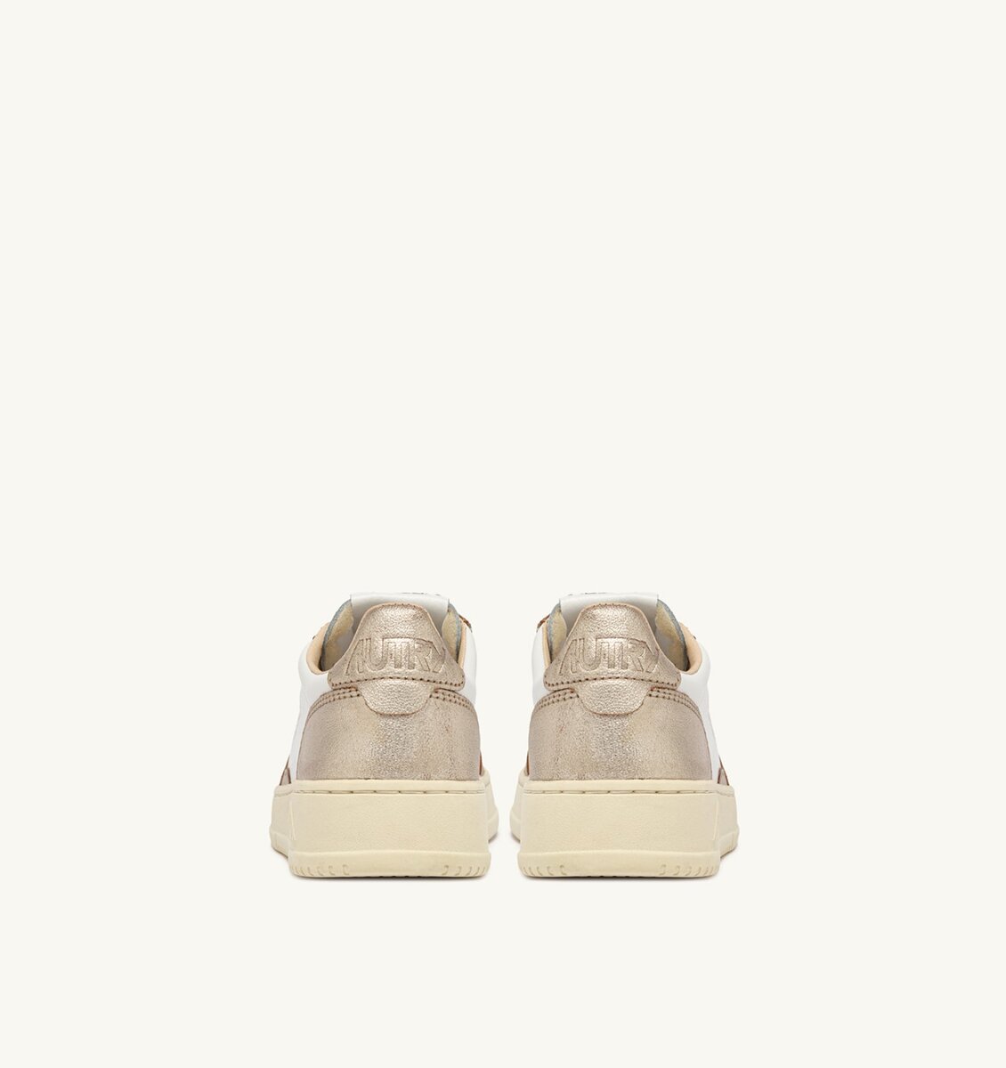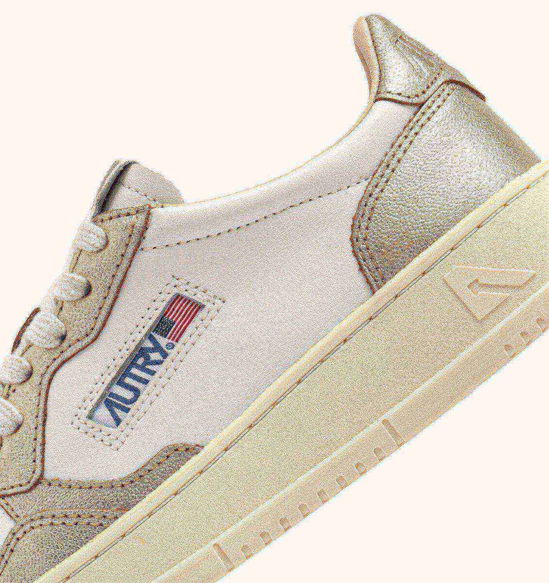 Ce modèle pour femme confirme l’esprit de l’Autry original inspiré du tennis des années 80 et l’actualise avec des proportions streetwear pour une nouvelle expérience de style et de confort. Il se caractérise par un motif color-block de caractère en cuir blanc et cuir platine métallisé.