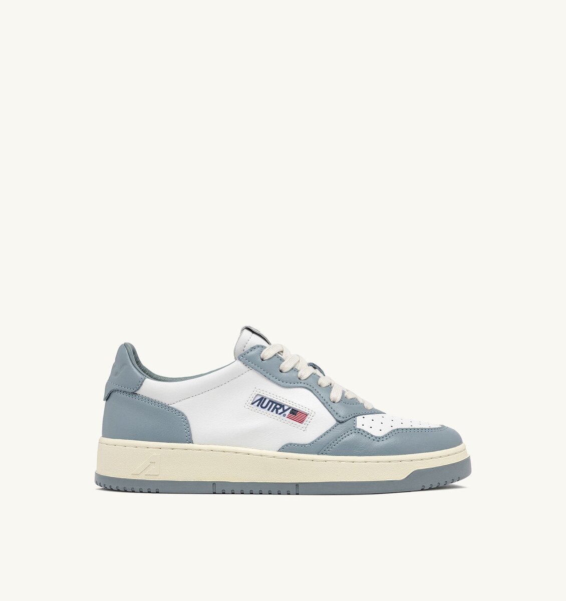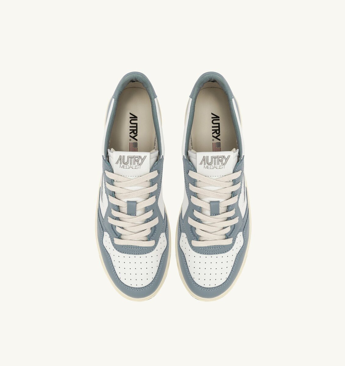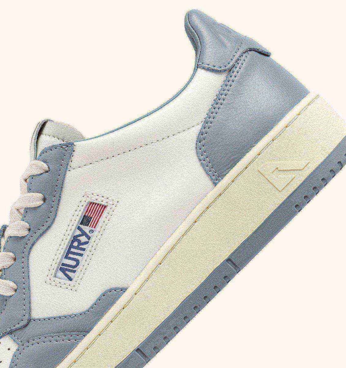 BASKETS MEDALIST LOW BICOLOR EN CUIR BLANC ET SILVER BLUE