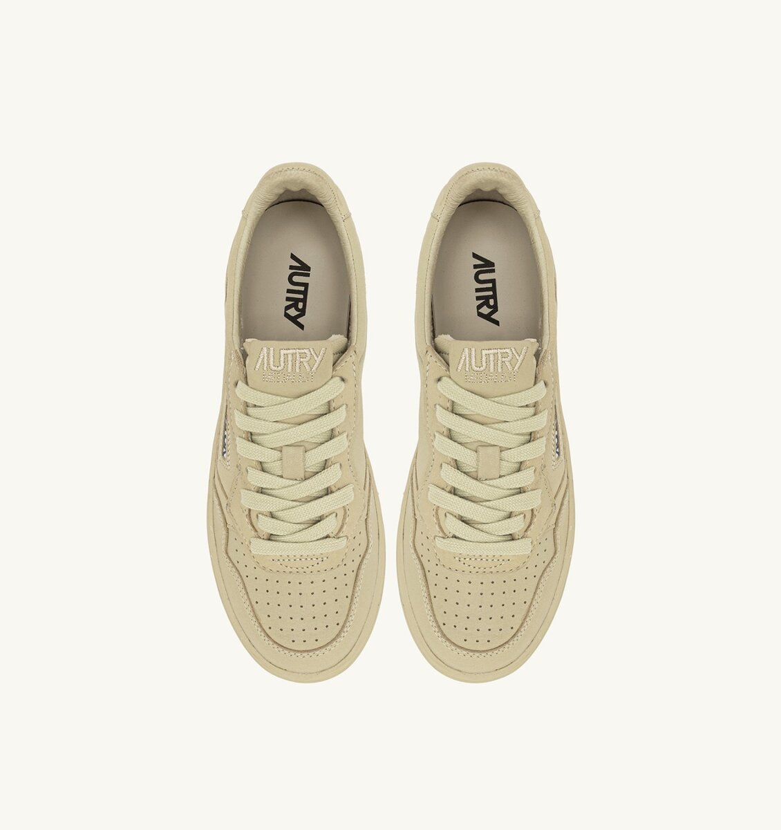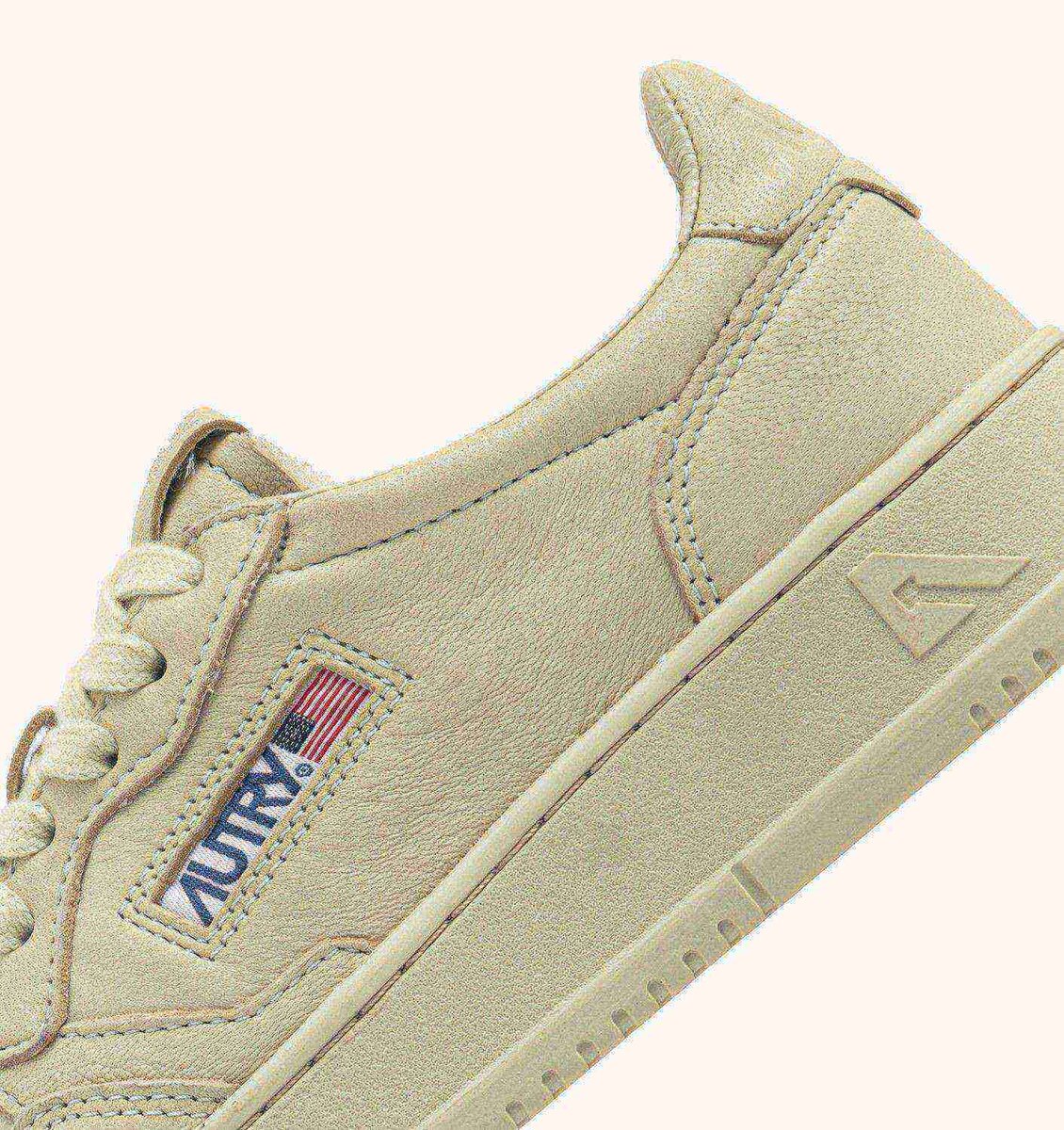 Cette basket pour femme est fabriquée en peau de chèvre beige douce et présente une finition à effet mat qui recouvre entièrement la tige et la Semelle en caoutchouc.L’embout avec des micro-trous augmente la respirabilité, tandis que le détail latéral se distingue par le logo Autry caractéristique.
