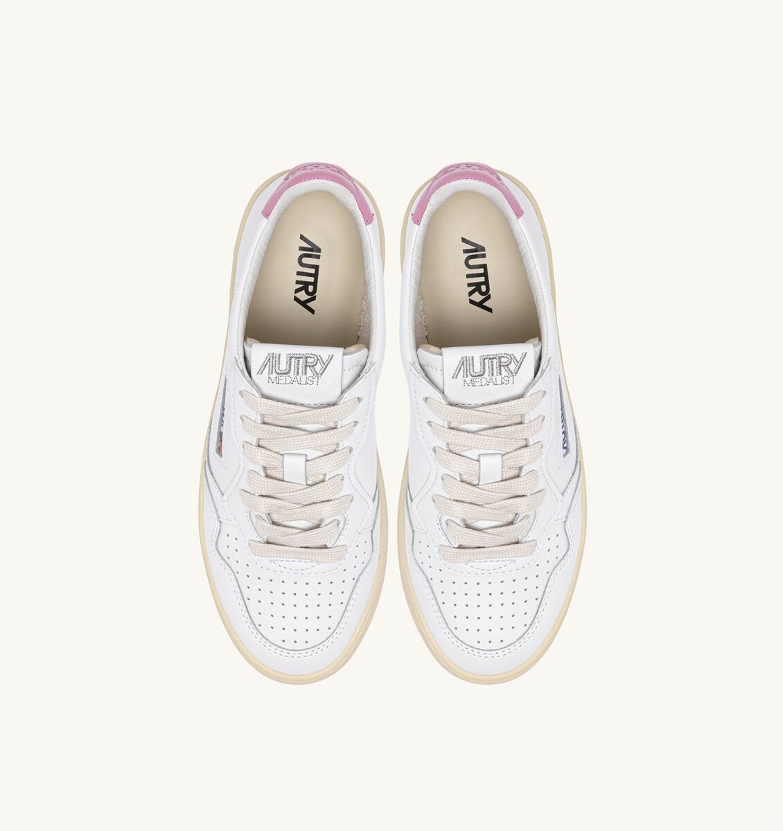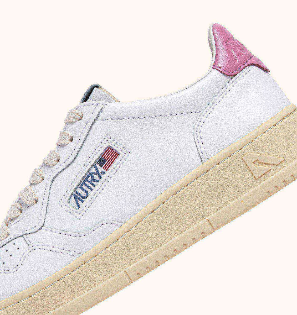 Pink leather accents on the outer side and heel are customized with the Autry logo.