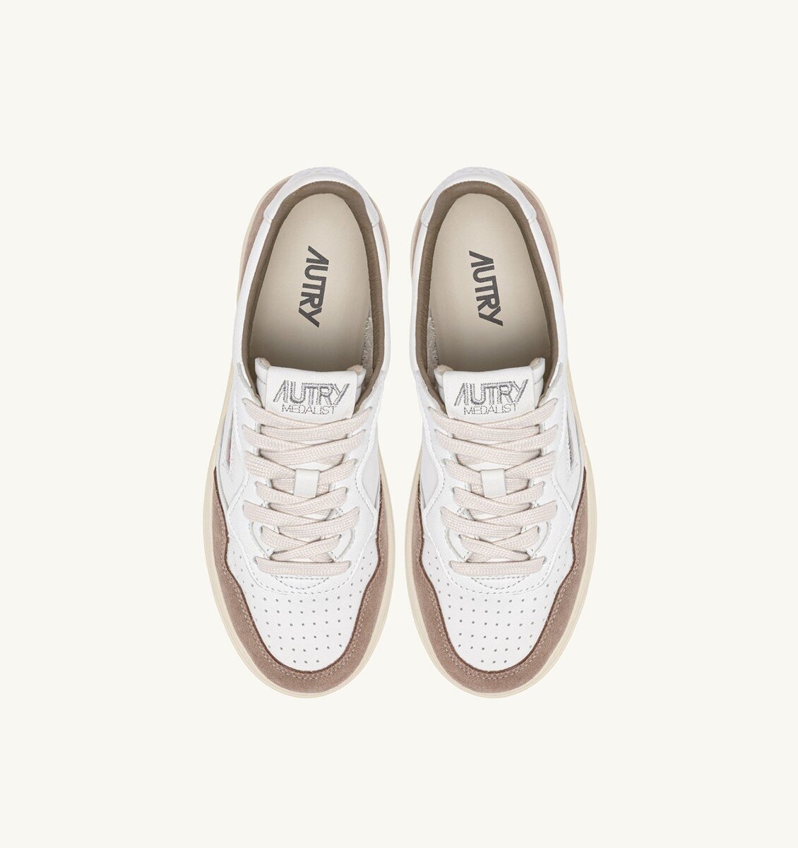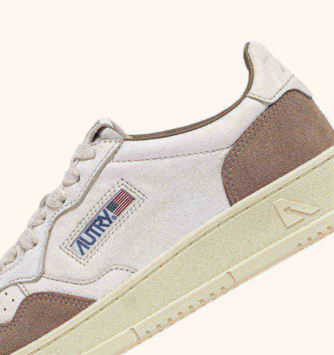 Autry Medalist heralds a new era of style and comfort. With a low top profile, this women’s sneakers is crafted from white goatskin, featuring brown suede inserts and a white logoed heel tab that define the upper.