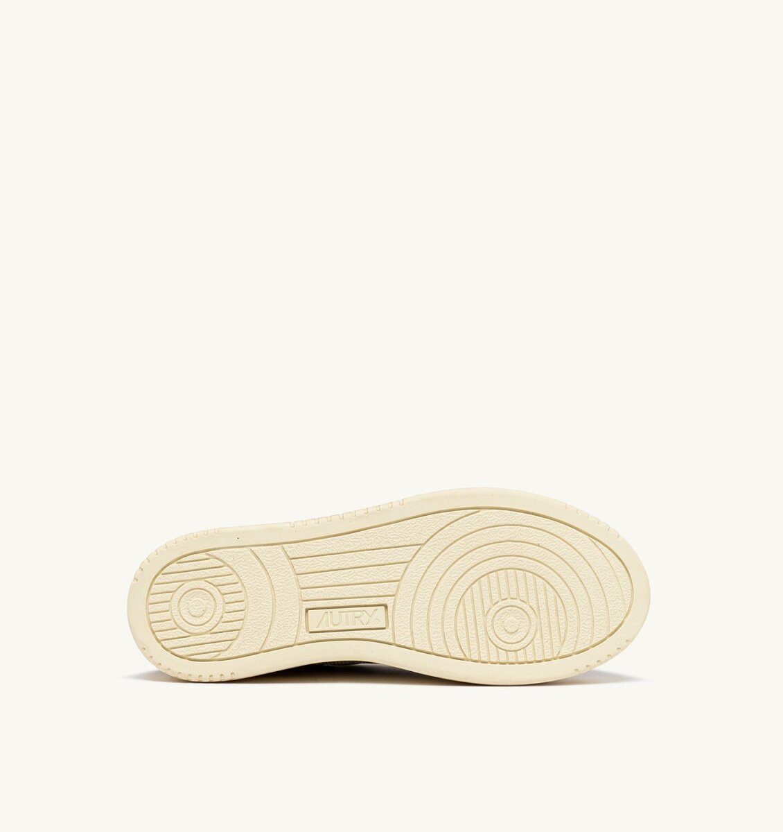 These women’s sneakers are crafted from gray mesh with a lived-in look and features goatskin and suede inserts in shades of white. The side insert draws attention to the distinctive Autry logo. The exclusive treatment used to create the vintage look is entirely Made in Italy.