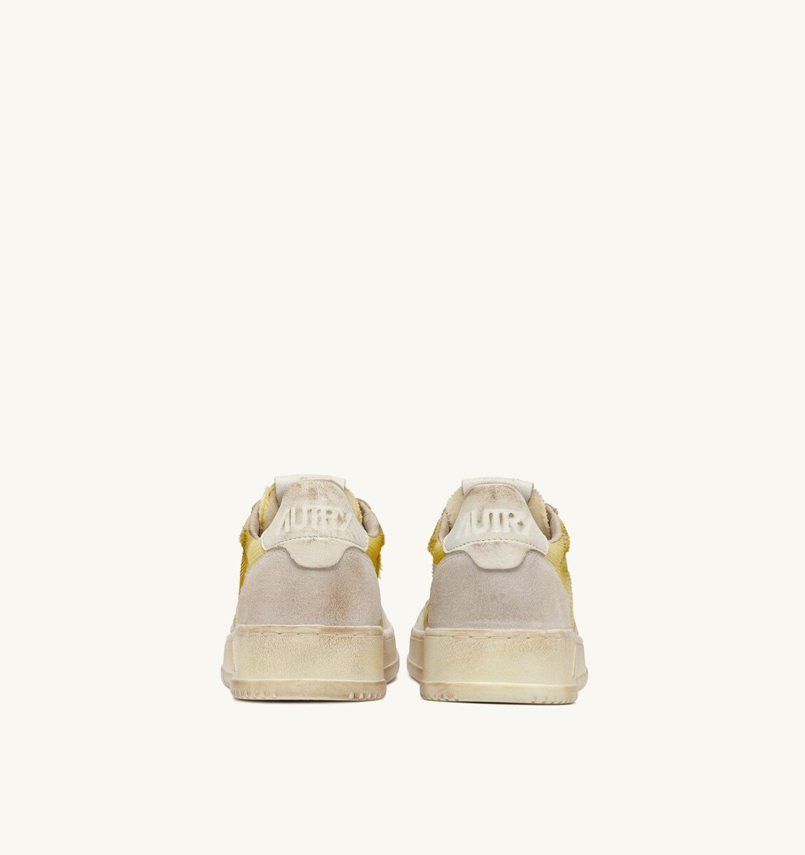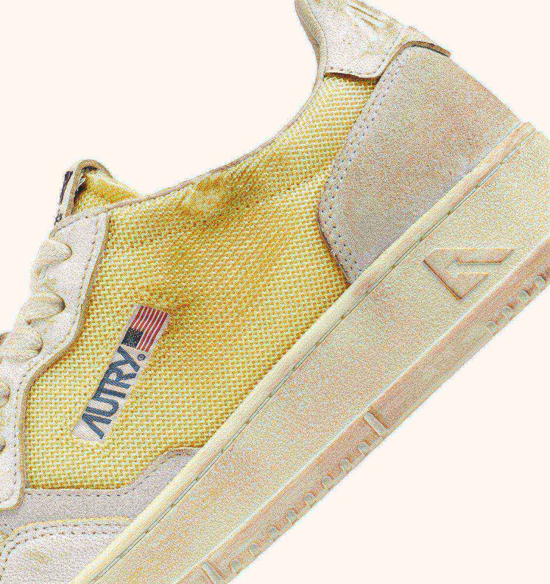 These women’s sneakers are crafted from ivory white mesh with a lived-in look and features goatskin and suede inserts in shades of white. The side insert draws attention to the distinctive Autry logo. The exclusive treatment used to create the vintage look is entirely Made in Italy.