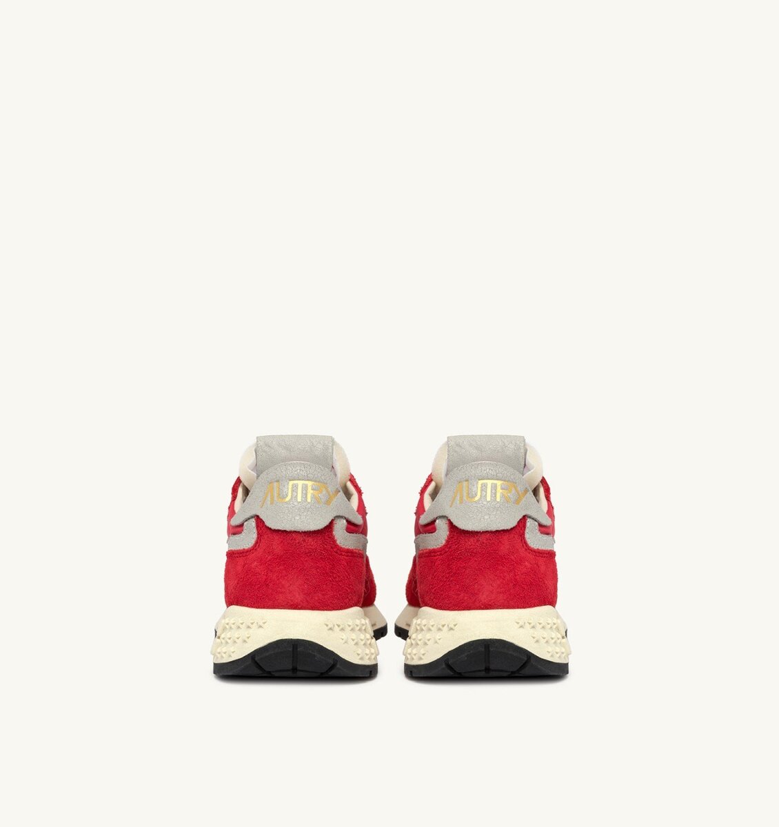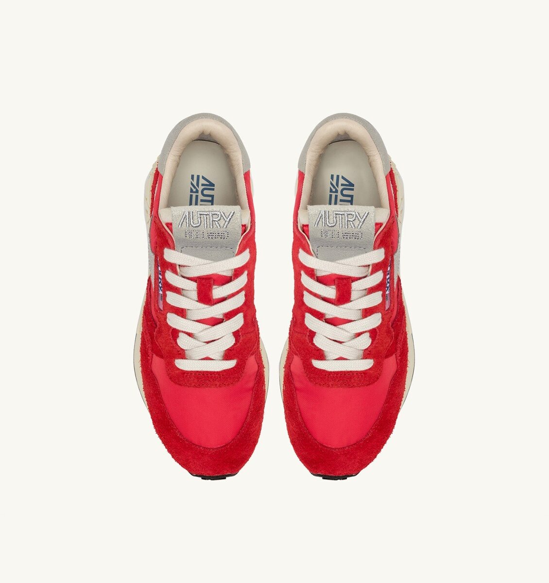 Innovante, légère et extrêmement flexible, Reelwind est la sneaker Autry inspirée du monde de la course à pied. Le modèle pour femme est composé d’un mélange de daim et de nylon rouge avec un patch en cuir blanc sur les côtés.