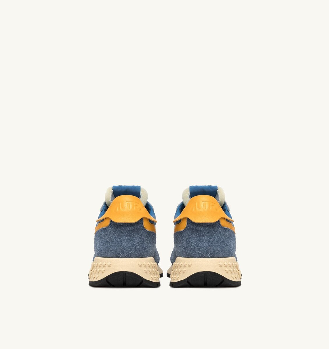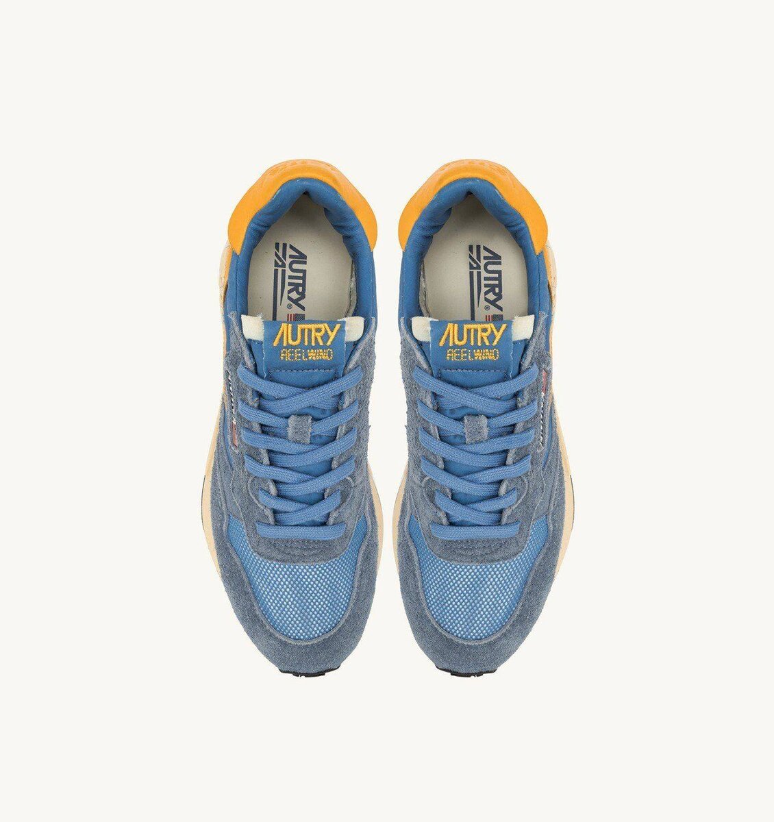 Innovative, light and extremely flexible, Reelwind Autry sneakers draw inspiration from the running world. The women’s style is crafted from a mix of bluette suede and nylon, with side panels in yellow leather.