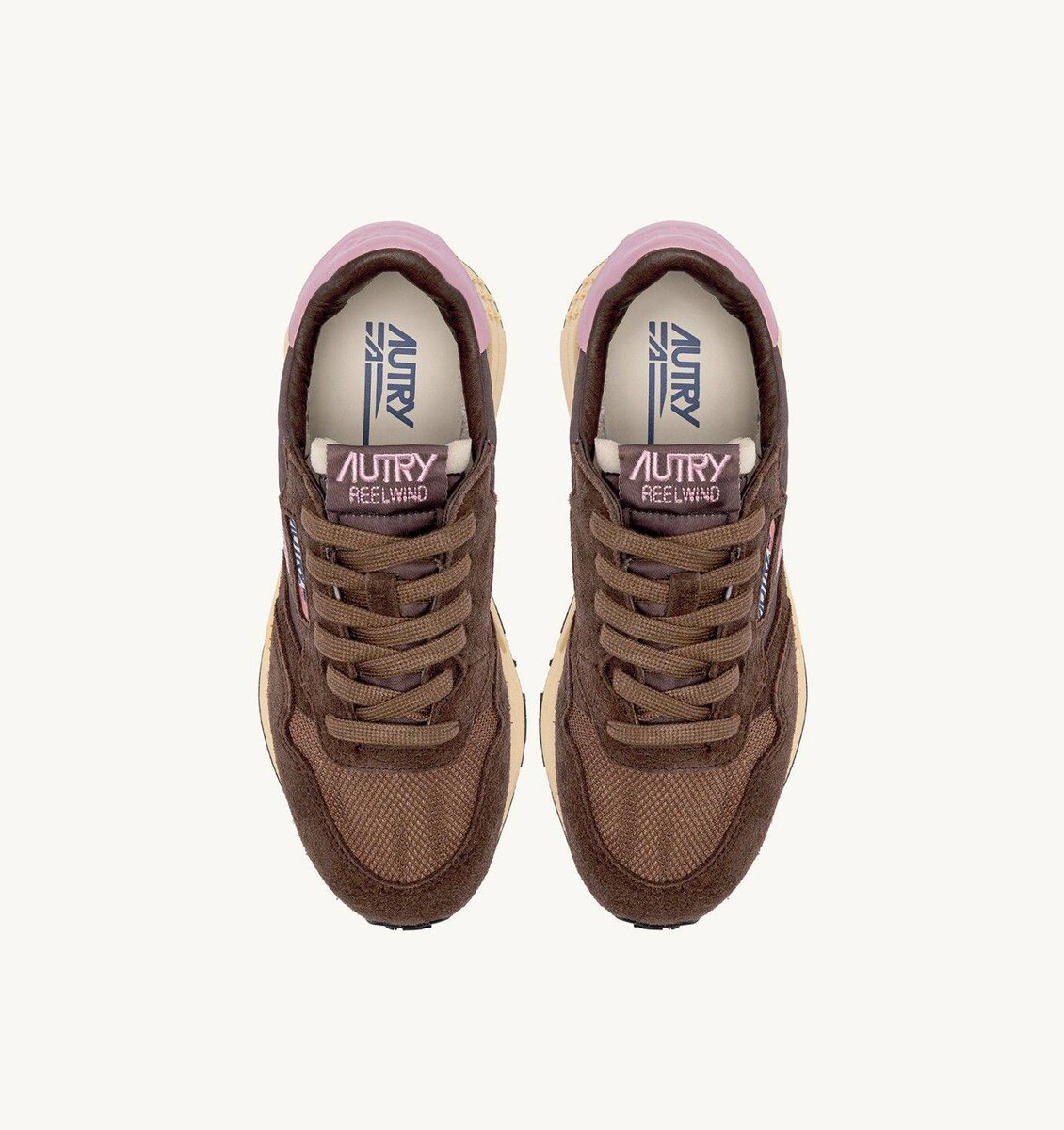 Reelwind low sneakers offer the technical edge of a performance sports shoe with the unmistakable style of the Autry aesthetic. This women’s athletic shoe is crafted from brown nylon and is reinforced by color matching suede inserts that create a dynamic design.