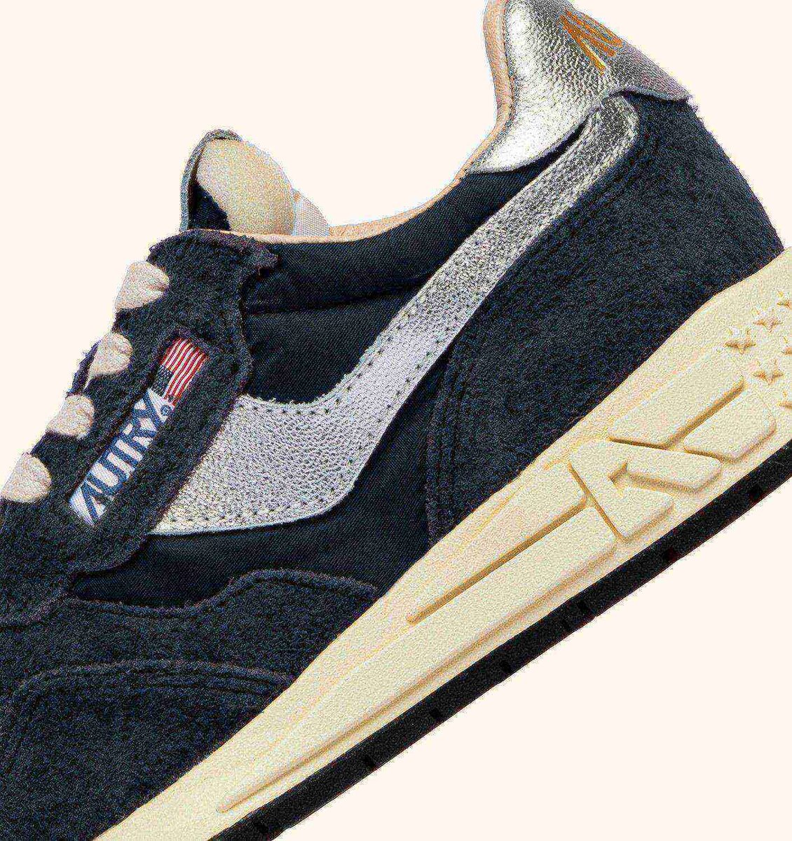 Light and streamlined, it is finished with a mesh toe and a running sole in rubber and Phylon that absorbs impact on the road or field. Details on the tongue, outer side, and heel are personalized with the Autry logo, adding a touch of authenticity for a contemporary everyday aesthetic.
