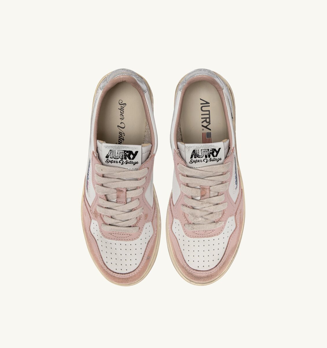 MEDALIST LOW SUPER VINTAGE SNEAKERS IN WHITE POWDER PINK AND SILVER LEATHER