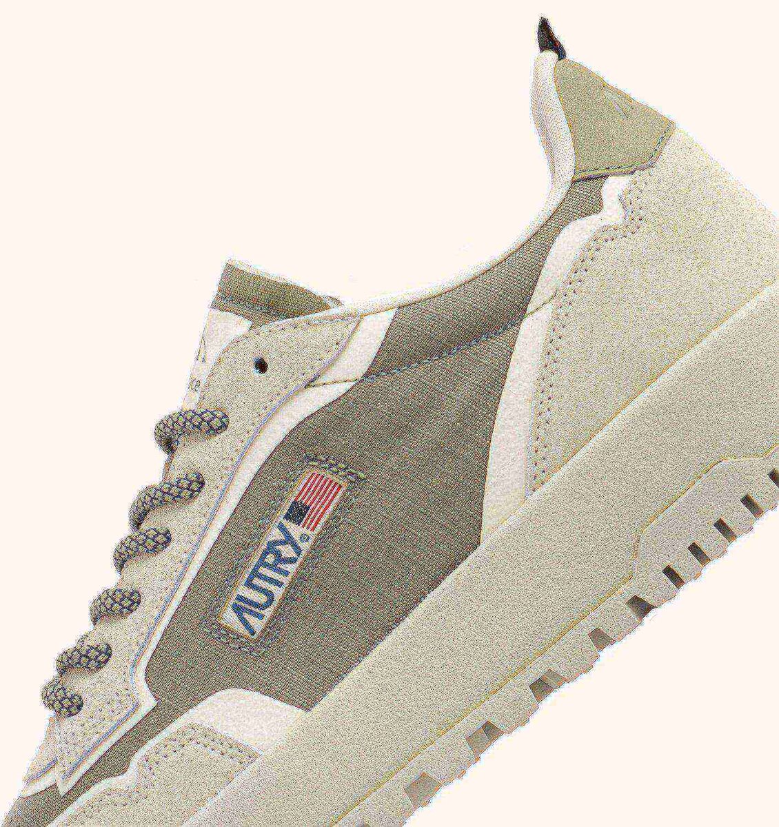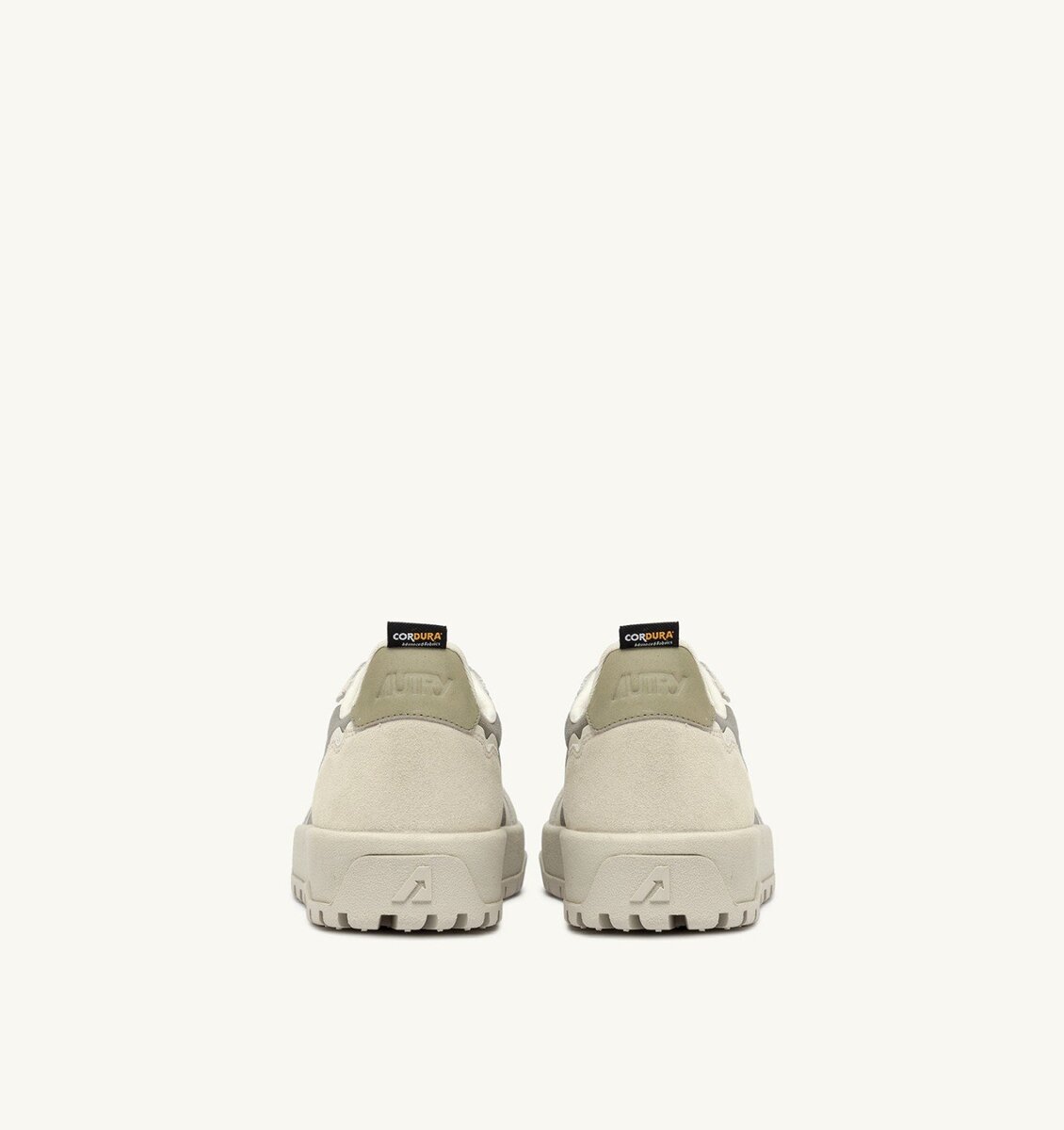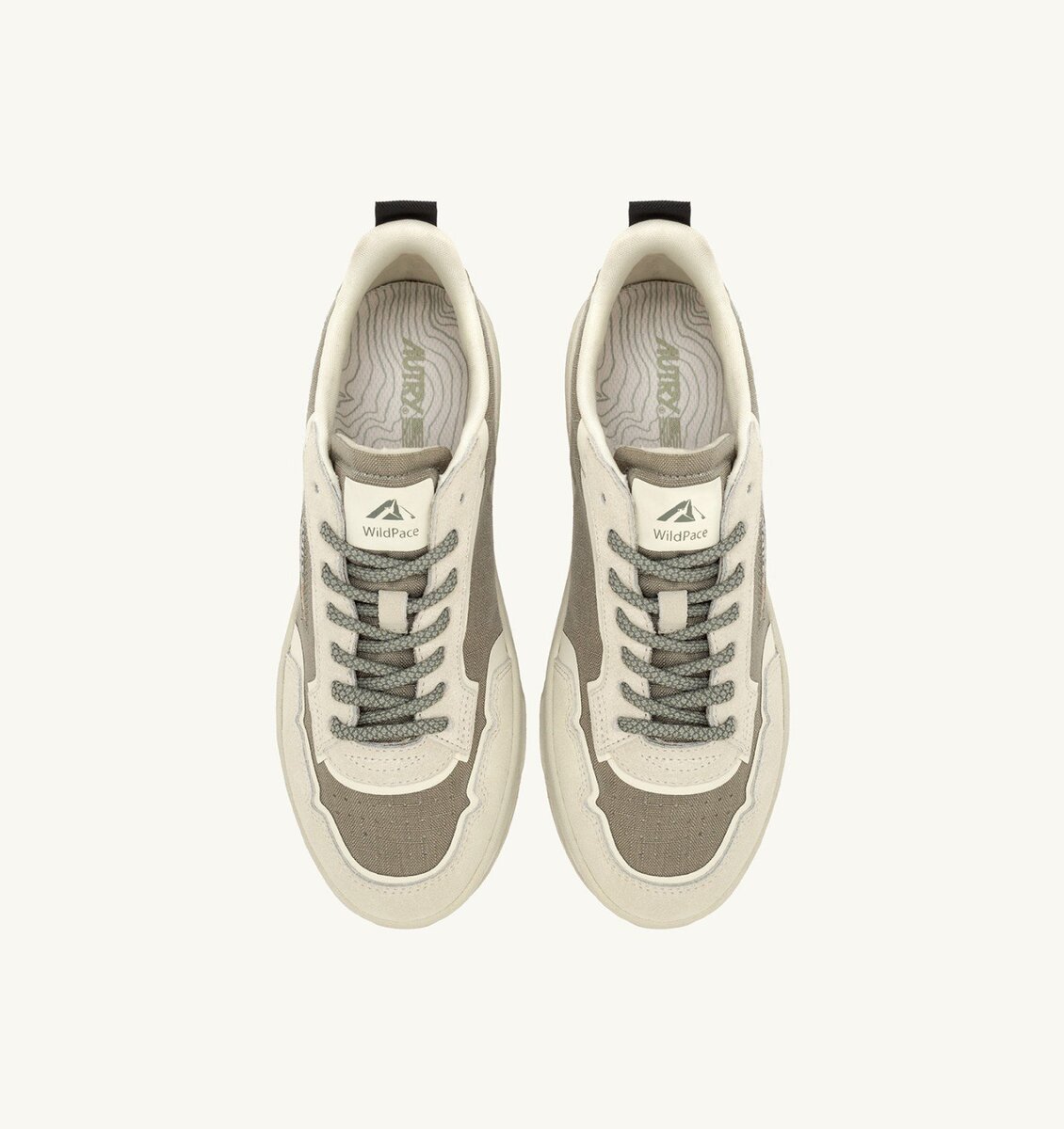 The new Autry Wildpace style stands out for its outdoor-inspired design, featuring technical details that enhance performance. Made of green cordura fabric and beige suede and enriched with coated TPU details, side detail with Autry logo and a leather back patch with embossed logo.