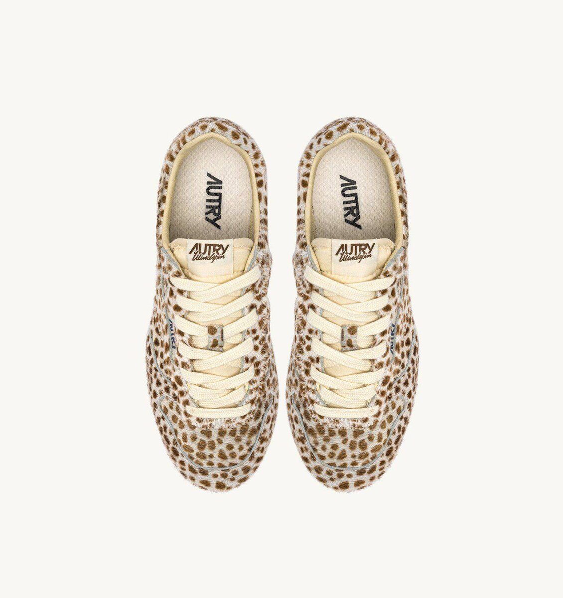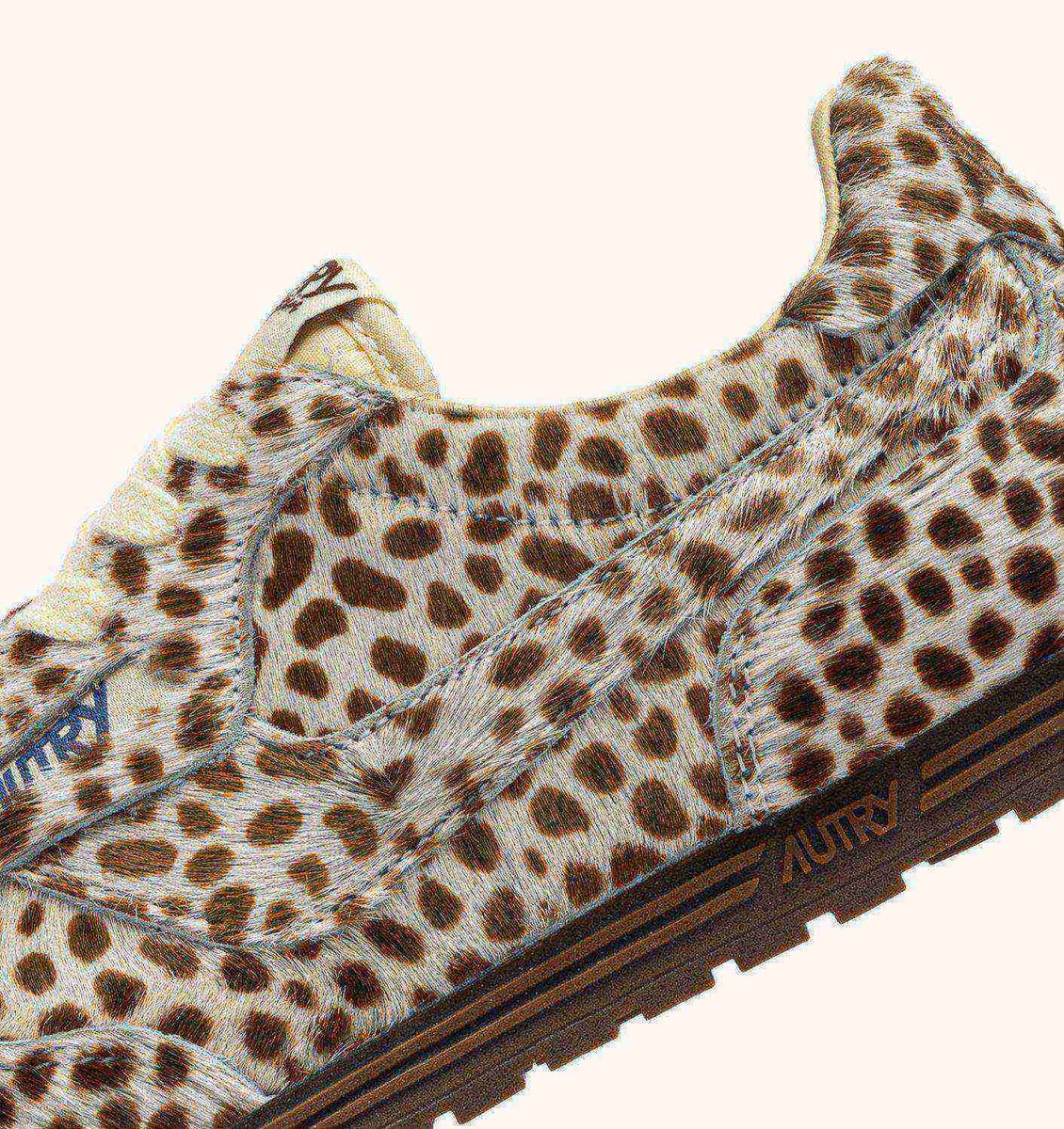 Crafted from animalier print pony hair effect, the Windspin features a sleek, streamlined silhouette. Its flat, dynamic profile embodies Autry’s signature fusion of vintage charm and modernity. The ultra-flat rubber sole ensures excellent grip on all urban surfaces.