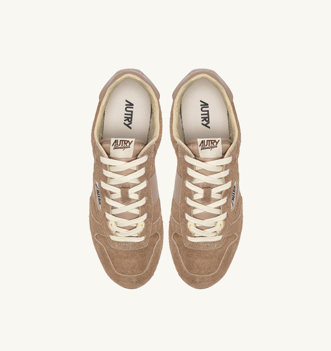 Crafted in beige brushed suede with tone-on-tone leather side inserts, the Windspin features a sleek, streamlined silhouette. Its flat, dynamic profile embodies Autry’s signature fusion of vintage charm and modernity. The ultra-flat rubber sole ensures excellent grip on all urban surfaces.